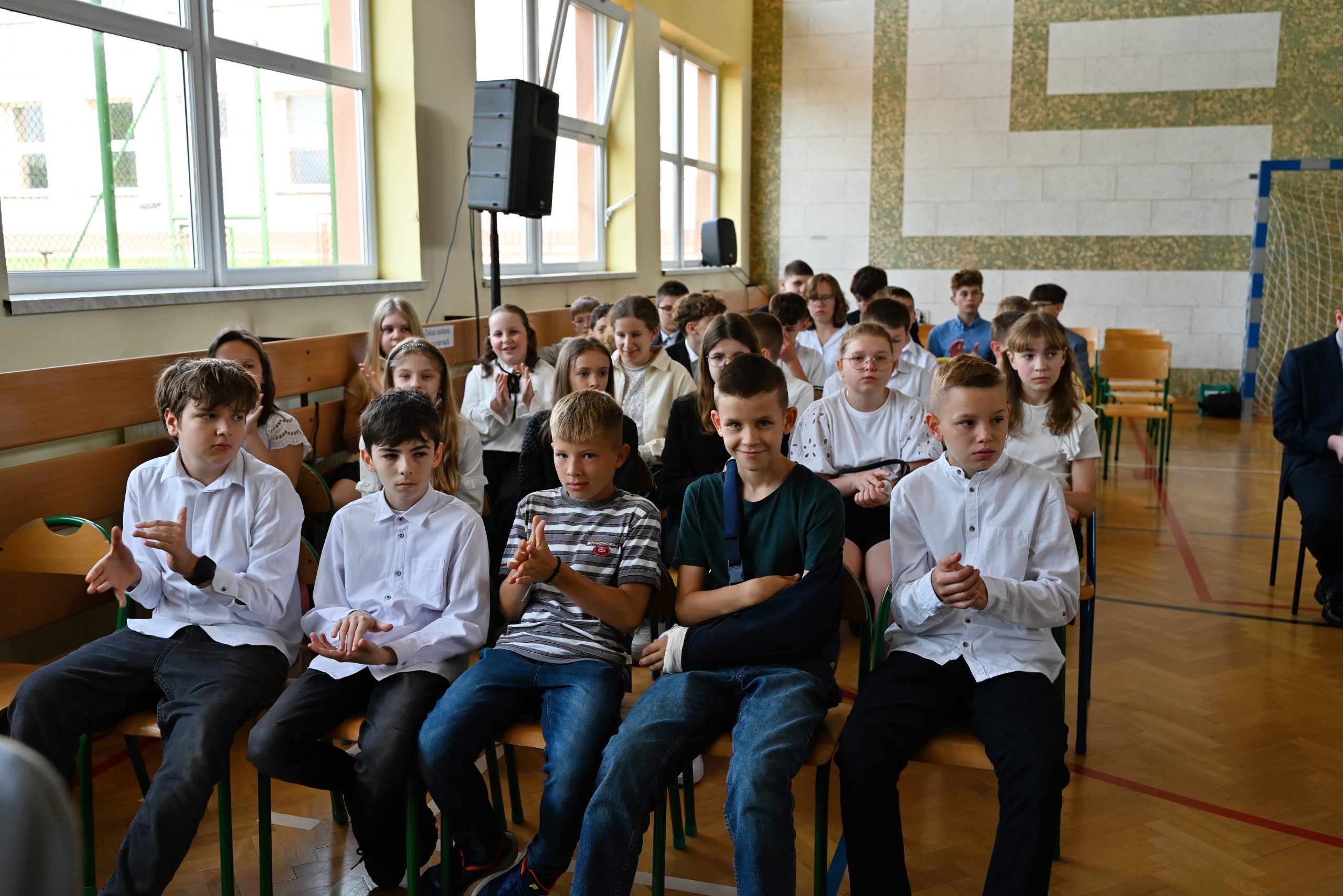 W uroczystości wzięli udział licznie zaproszeni goście: dyrektor Delegatury w Krośnie Kuratorium Oświaty w Rzeszowie Iwona Jurczyk, sekretarz gminy Brzozów Waldemar Och, naczelnik Wydziału Spraw Społecznych, Edukacji i Kultury Urzędu Miejskiego w Brzozowie Nina Ścibor, przewodnicząca Komisji Kultury, Oświaty, Sportu, Turystyki i Wypoczynku Rady Miejskiej w Brzozowie Mariola Pilszak, dyrektor Muzeum Regionalnego Jerzy Ferdynand Adamski, dyrektor Zespołu Ekonomiczno-Administracyjnego Szkół Józef Baran, emerytowani dyrektorzy miejscowej szkoły Alina Zygarowicz i Małgorzata Woźniak, proboszcz parafii ks. Andrzej Kuś i sołtys sołectwa Humniska – Skrzyżowanie Mariusz Fic. Nie zabrakło również dyrektorów szkół i przedszkoli z gminy Brzozów, pracowników szkoły, rodziców oraz – co najważniejsze – uczniów, dla których to święto miało szczególne znaczenie.