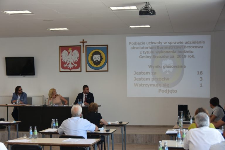Rada Miejska w Brzozowie po zatwierdzeniu sprawozdania Burmistrza Brzozowa z wykonania budżetu gminy Brzozów oraz sprawozdania finansowego za rok ubiegły, po uprzednim zapoznaniu się z opinią Regionalnej Izby Obrachunkowej, informacją o stanie mienia komunalnego, stanowiskiem Komisji Rewizyjnej dotyczącym zaopiniowania wykonania budżetu gminy Brzozów za rok 2019 oraz wnioskiem o udzielenie absolutorium Burmistrzowi Brzozowa, jak również opinią RIO w sprawie zaopiniowania wniosku ww. Komisji udzieliła Burmistrzowi Brzozowa – Szymonowi Stapińskiemu absolutorium z wykonania budżetu za rok 2019. Za udzieleniem absolutorium zagłosowało szesnastu radnych, przy trzech głosach przeciwnych oraz jednym wstrzymującym. Tym samym Burmistrz uzyskał aprobatę Rady Miejskiej dla podejmowanych działań i prowadzonej polityki finansowej gminy Brzozów.