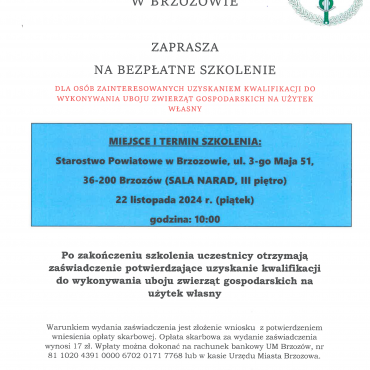 Szkolenie dotyczące wykonywania uboju zwierząt gospodarskich na użytek własny.