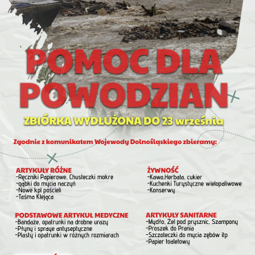 Pomoc dla powodzian- Wydłużamy zbiórkę do poniedziałku 23 września!