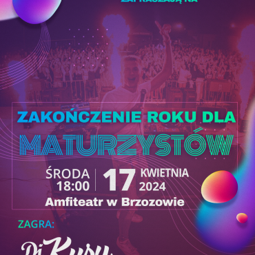 Zaczynamy sezon imprez plenerowych. Burmistrz Brzozowa oraz Samorząd Uczniowski przy I Liceum Ogólnokształcącym im. Króla Kazimierza Wielkiego w Brzozowie zapraszają na zakończenie roku szkolnego dla Maturzystów.