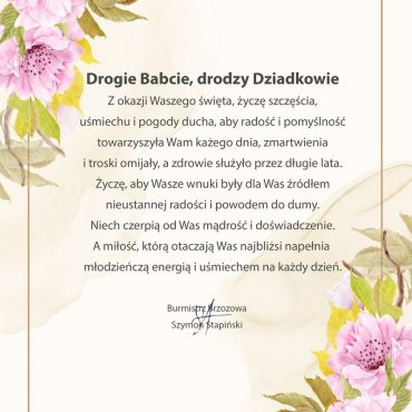 Życzenie Burmistrza Brzozowa Szymona Stapińskiego z okazji Dnia Babci i Dziadka