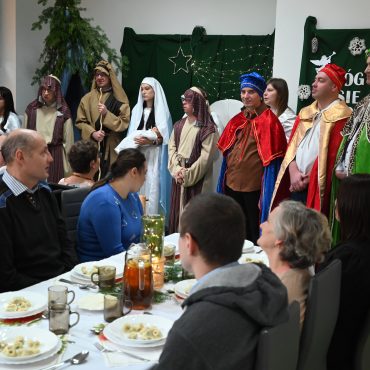 Burmistrz Brzozowa Szymon Stapiński wraz z zastępcą Mariuszem Bieńczakiem i Sekretarzem Gminy Brzozów Waldemarem Ochem zasiedli wspólnie do wigilijnego stołu z uczestnikami i pracownikami Warsztatu Terapii Zajęciowej w Starej Wsi.