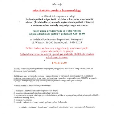 Informacja Powiatowego Lekarza Weterynarii w Brzozowie