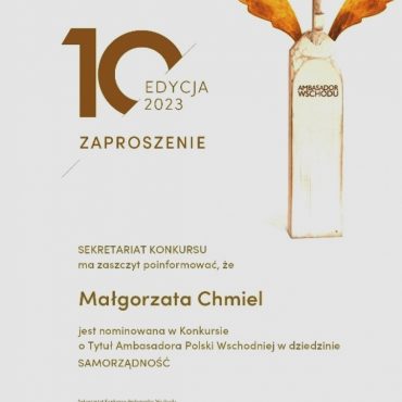 Małgorzata Chmiel nominowana w konkursie o Tytuł Ambasadora Polski Wschodniej