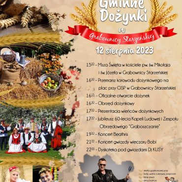 Już w najbliższą sobotę 12 sierpnia w Grabownicy Starzeńskiej odbędą się Gminne Dożynki. W tym roku połączone będą z Jubileuszem 60-lecia działalności Kapeli Ludowej i Zespołu Obrzędowego „Graboszczanie”. Serdecznie zapraszamy Mieszkańców do udziału.