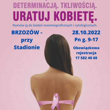 Kobiety mają okazję skorzystać z bezpłatnych badań profilaktycznych: cytologii i mammografii. CytoMammobus Fundacji SOS Życie będzie otwarty 28 Października w Brzozowie w godz. 9-17. Aby umówić się na badania do ambulansu wystarczy zadzwonić pod numer 17 582 40 60 i wybrać konkretną godzinę wizyty.