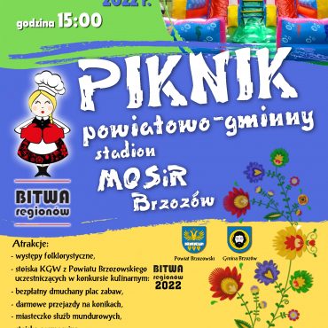 11 września br. zapraszamy na stadion MOSIR w Brzozowie na PIKNIK POWIATOWO-GMINNY. Atrakcje: występy folklorystyczne, stoiska KGW z Powiatu Brzozowskiego uczestniczących w konkursie kulinarnym: BITWA REGIONÓW 2022, bezpłatny dmuchany plac zabaw, miasteczko służb mundurowych, stoiska promocyjne, gry, zabawy, animacje dla dzieci, malowanie twarzy, tatuaże, duże bańki mydlane i wiele innych.