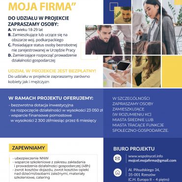 W dniu 09.06.2022 r. rusza rekrutacja do projektu. „Mój Cel – Moja Firma”.