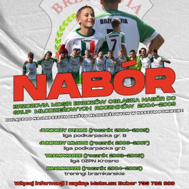 Trwa nabór do grup młodzieżowych Brzozovii Brzozów, szczegóły na plakacie.