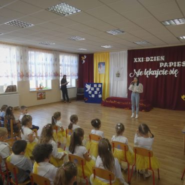 W ramach uczczenia obchodów XXI Dnia Papieskiego obchodzonego w tym roku pod hasłem „NIE LĘKAJCIE SIĘ” w dniu 7.10.2021 zorganizowane zostało przez panią dyrektor Przedszkola Samorządowego w Starej Wsi Małgorzatę Florczak.