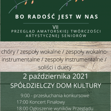 W dniu 2.10.2021, po roku przerwy powróci do Stalowej Woli Przegląd Amatorskiej Twórczości Artystycznej Seniorów „Bo radość jest w nas”.