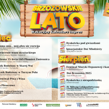 Przed nami pełne atrakcji wakacyjne miesiące! Gmina Brzozów zaprasza mieszkańców i gości do udziału w letnich wydarzeniach – czeka na Was mnóstwo dobrej zabawy, muzyki, kultury i sportu. Do zobaczenia na letnich imprezach! Szczegółowy harmonogram wydarzeń poniżej