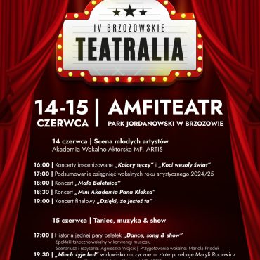 Burmistrz Brzozowa, Akademia Wokalno-Aktorska MF. Artis i Brzozowski Dom Kultury serdecznie zapraszają na wyjątkowe dwudniowe wydarzenie łączące śpiew, muzykę i taniec! W programie spektakle dla najmłodszych i całych rodzin. Zarezerwujcie sobie czas w następny weekend i koniecznie zajrzyjcie do Amfiteatru w Brzozowie. Gwarantujemy niezapomniane przeżycia artystyczne. Szczegóły na plakacie.