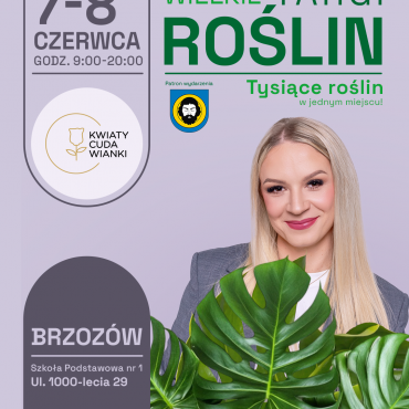 Przypominamy, WIELKIE TARGI ROŚLIN BRZOZÓW – zapraszamy do zielonego świata już w najbliższy weekend 7-8 czerwca! To wyjątkowe wydarzenie dla wszystkich, którzy kochają zieleń i chcą otaczać się pięknem natury. Patronat nad wydarzeniem objął Burmistrz Brzozowa. Szkoła Podstawowa Nr 1 w Brzozowie, przy ul. 1000-lecia 29.