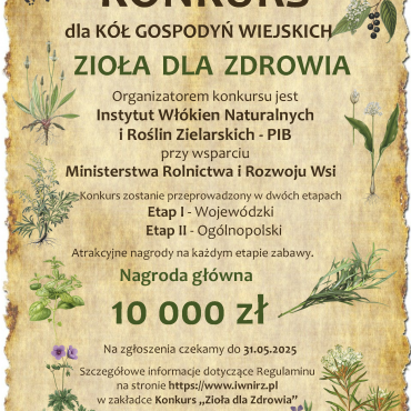Serdecznie zapraszamy Koła Gospodyń Wiejskich oraz stowarzyszenia działające na obszarach wiejskich do udziału w II Ogólnopolskim Konkursie „Zioła dla Zdrowia”. To wyjątkowa okazja, by zaprezentować bogactwo wiedzy zielarskiej, regionalnych tradycji i zaangażowania społecznego.