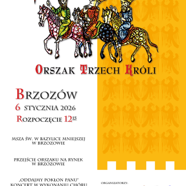 Z radością zapraszamy mieszkańców naszej gminy do udziału w Orszaku Trzech Króli, który odbędzie się 6 stycznia 2026 roku . Wydarzenie rozpocznie się o godz. 12:15 Mszą Świętą w Bazylice Mniejszej w Brzozowie. Następnie uczestnicy uformują orszak i wspólnie przejdą na Rynek.
