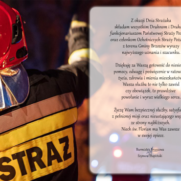Dziś obchodzimy Dzień Strażaka. Życzenia wszystkim druhnom i druhom składa Burmistrz Brzozowa Szymon Stapiński.