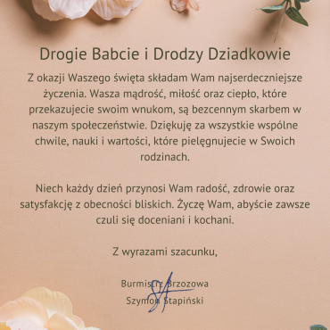 Życzenia Burmistrza Brzozowa z okazji Dnia Babci i Dziadka