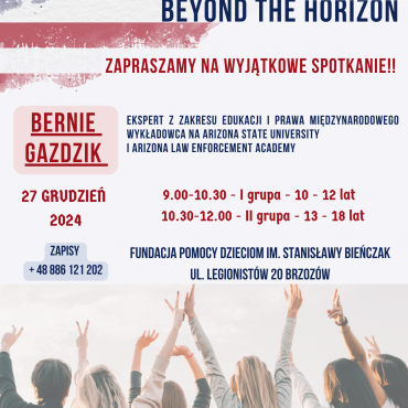 Fundacja Pomocy Dzieciom im. Stanisławy Bieńczak zaprasza na spotkanie z ekspertem z USA w ramach autorskiego programu wolontariatu międzynarodowego BEYOND THE HORIZON.