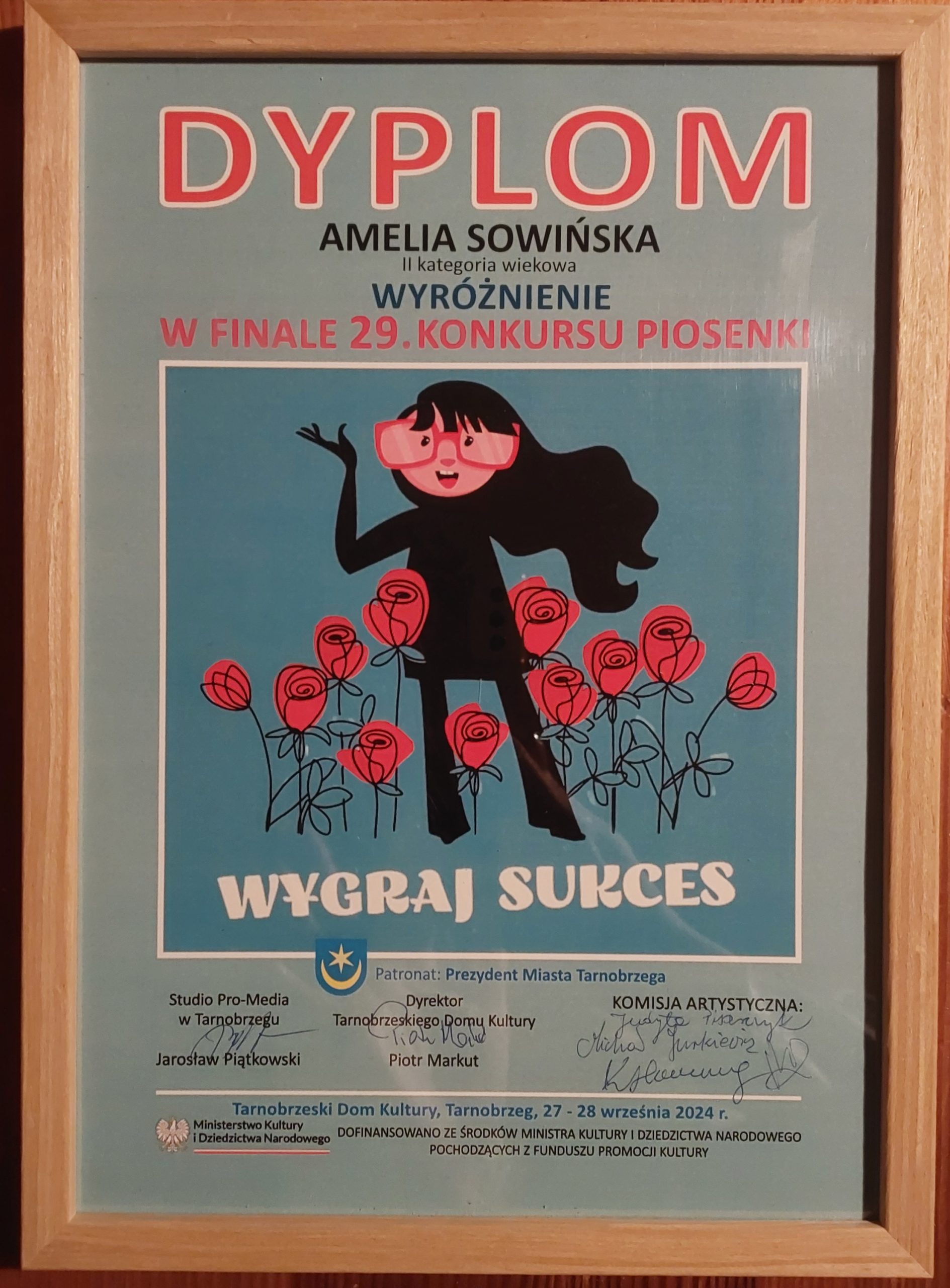 Do finału 27 września br. zakwalifikowała się nasza młoda wokalistka Amelia Sowińska z Brzozowa, która zaśpiewała piosenkę „To mój czas”, kwalifikując się jednocześnie do dwudziestki dziewiątki wokalistów nagrodzonych na uroczystej gali, która odbyła się dnia 28 września w Tarnobrzeskim Domu Kultury.