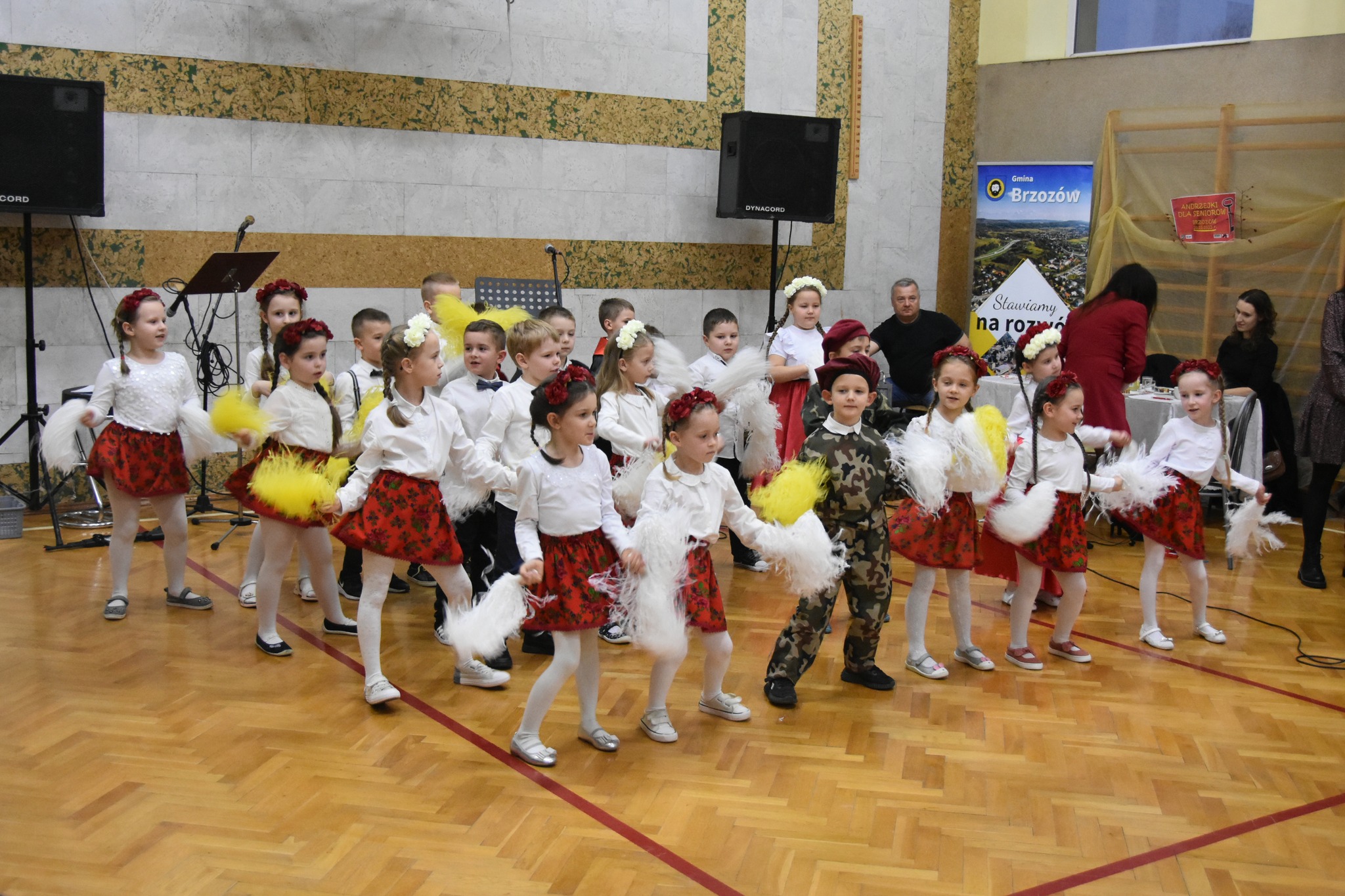 Przybyłych gości przywitała Agnieszka Wójcik, po czym część artystyczną imprezy otworzył występ dzieci z Przedszkola Samorządowego Nr 1 w Brzozowie, które w ciekawym programie zaprezentowały swoje przywiązanie i miłość do starszego pokolenia oraz Ojczyzny. Następny był występ grupy dziewczyn z formacji tanecznej TAMITU, działającej przy Brzozowskim Domu Kultury, które zaprezentowały zebranym kilka interesujących układów tanecznych.