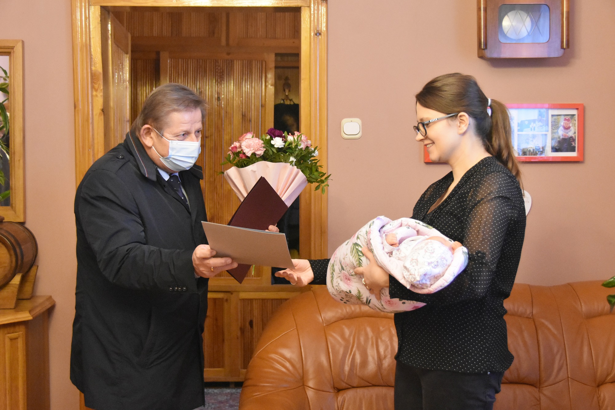 Kierownik USC w Brzozowie Piotr Stańko,w imieniu burmistrza Brzozowa Szymona Stapińskiego, złożył szczęśliwym rodzicom gratulacje i życzenia zdrowia dla pociechy  oraz wielu szczęśliwych chwil w nowym roku, który tak pięknie rozpoczął się dla młodego małżeństwa.