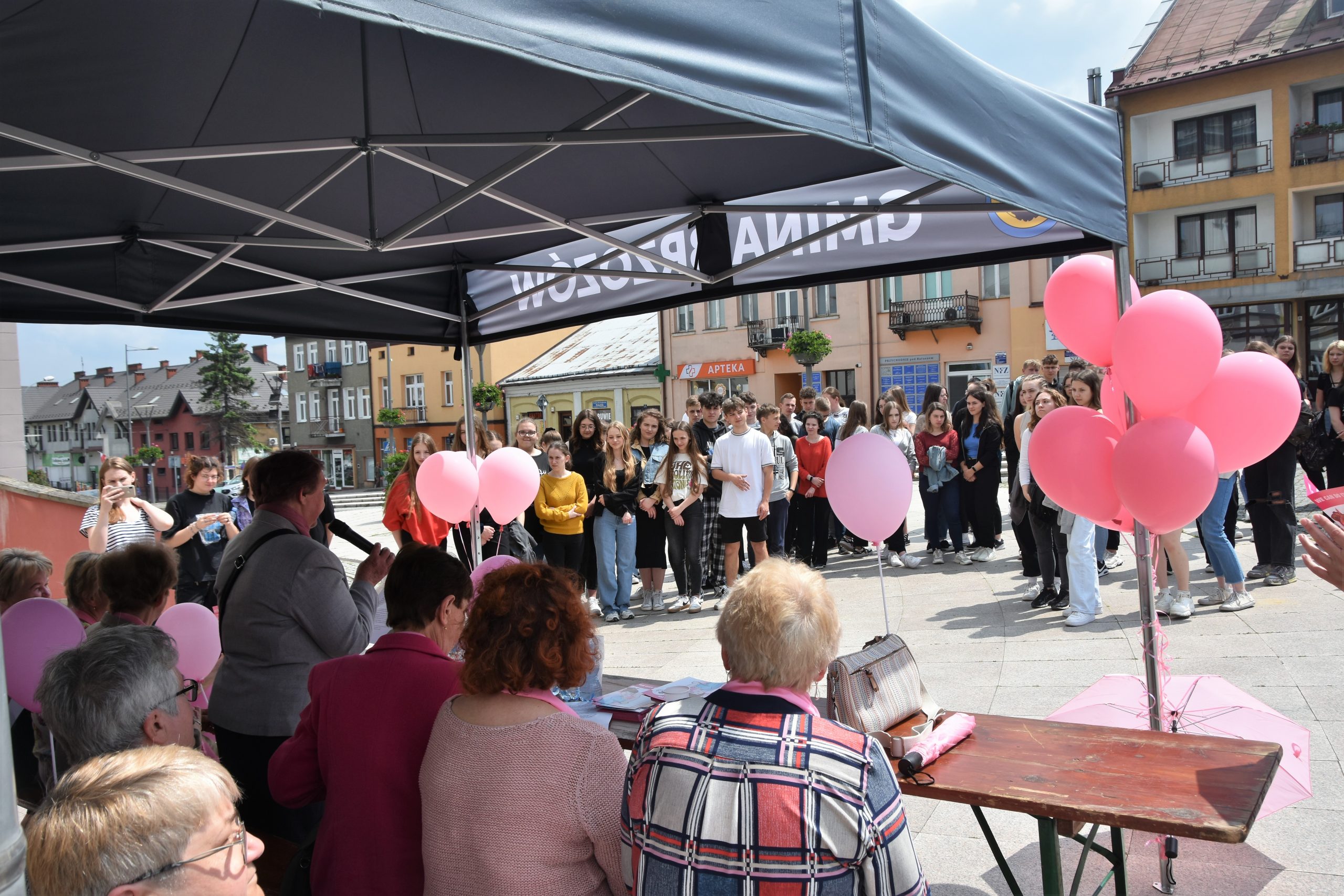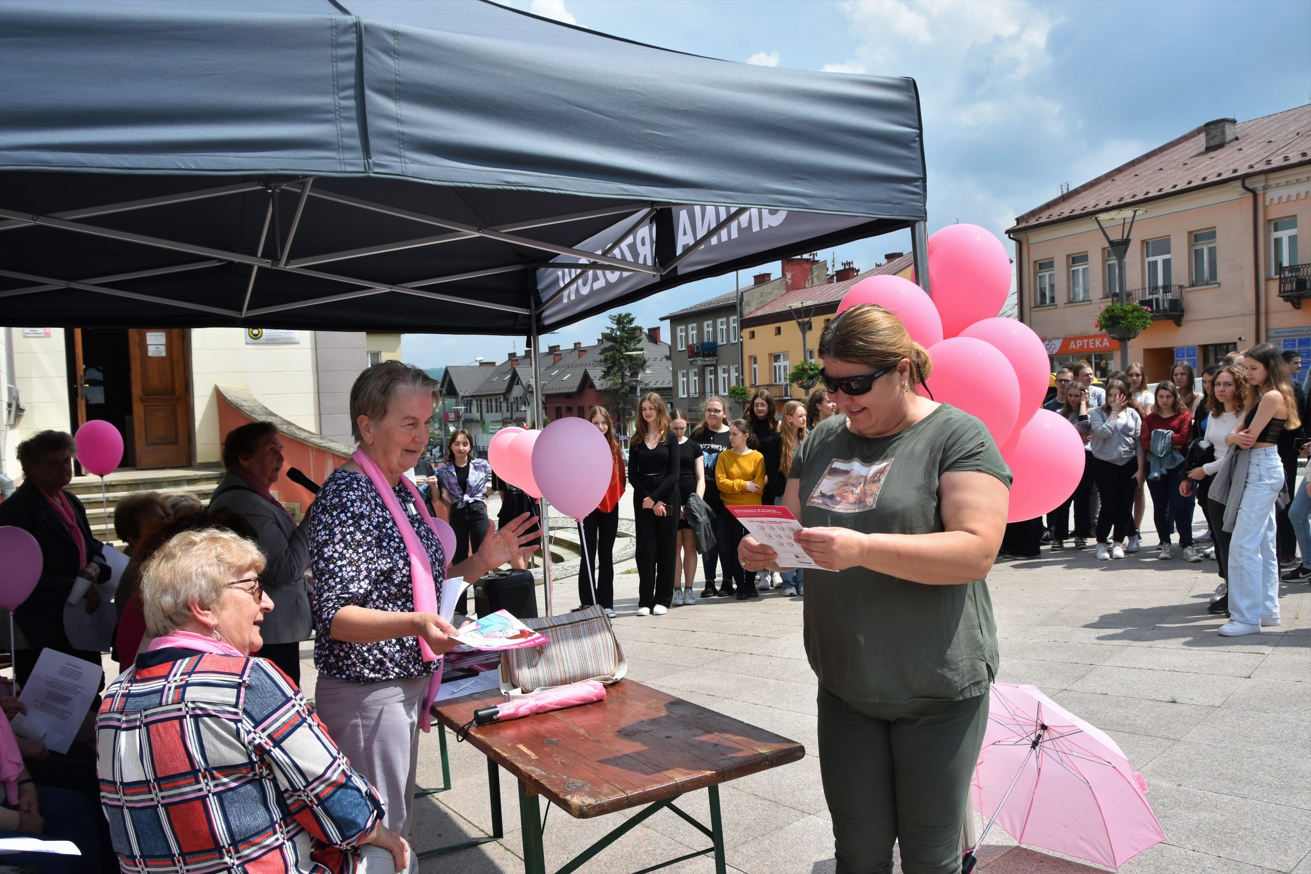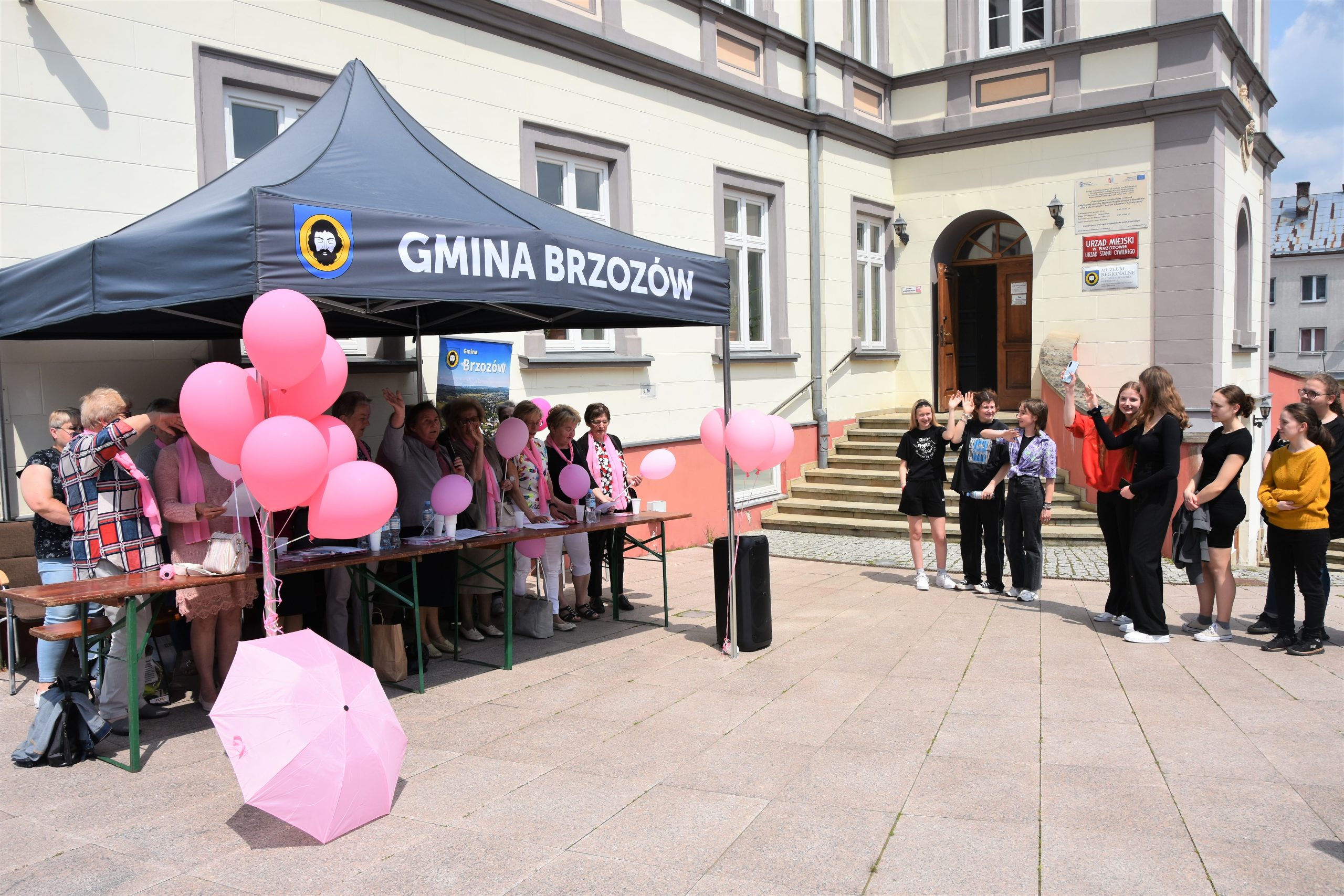 Akcja rozpoczęła się pod Urzędem Miejskim w Brzozowie, skąd Panie ze stowarzyszenia z różowymi balonikami i chustkami przeszły na brzozowski Rynek do przygotowanego specjalnie na tę okazję stoiska profilaktycznego. Tam spotkały się z młodzieżą z brzozowskich szkół ponadpodstawowy i mieszkańcami, rozdając im ulotki informacyjne.