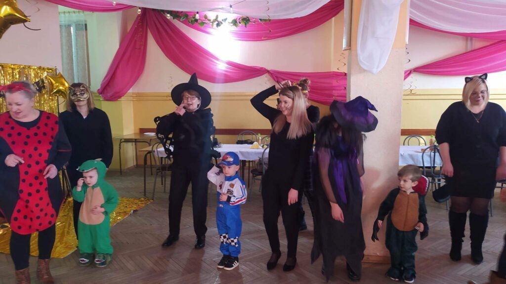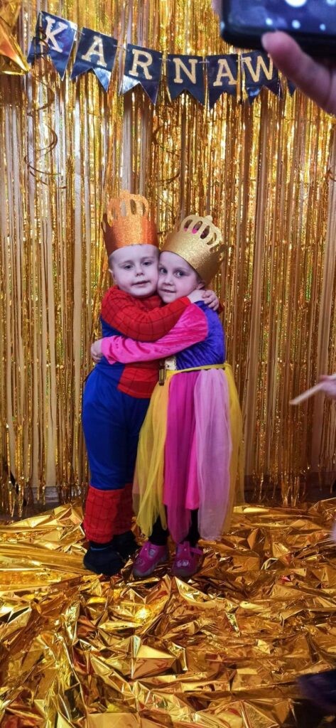 Podczas tańców można było podziwiać fantastyczne stroje dzieci i rodziców , a w czasie przerw czekała na wszystkich pięknie przygotowana ścianka do pamiątkowych zdjęć. Jednym z ważniejszych momentów było losowanie na Królową i Króla balu.