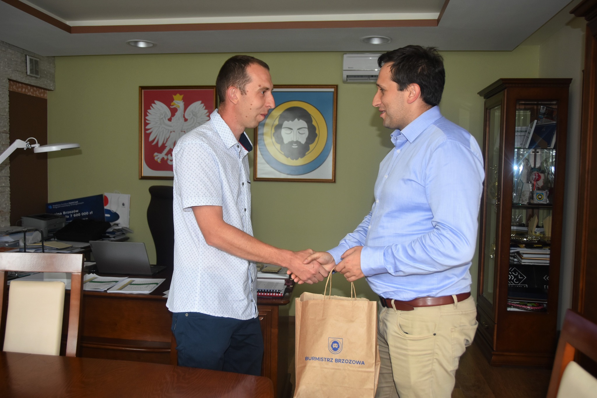 Burmistrz Brzozowa spotkał się z Jakubem Drożdżalem – bohaterskim pracownikiem Poczty Polskiej