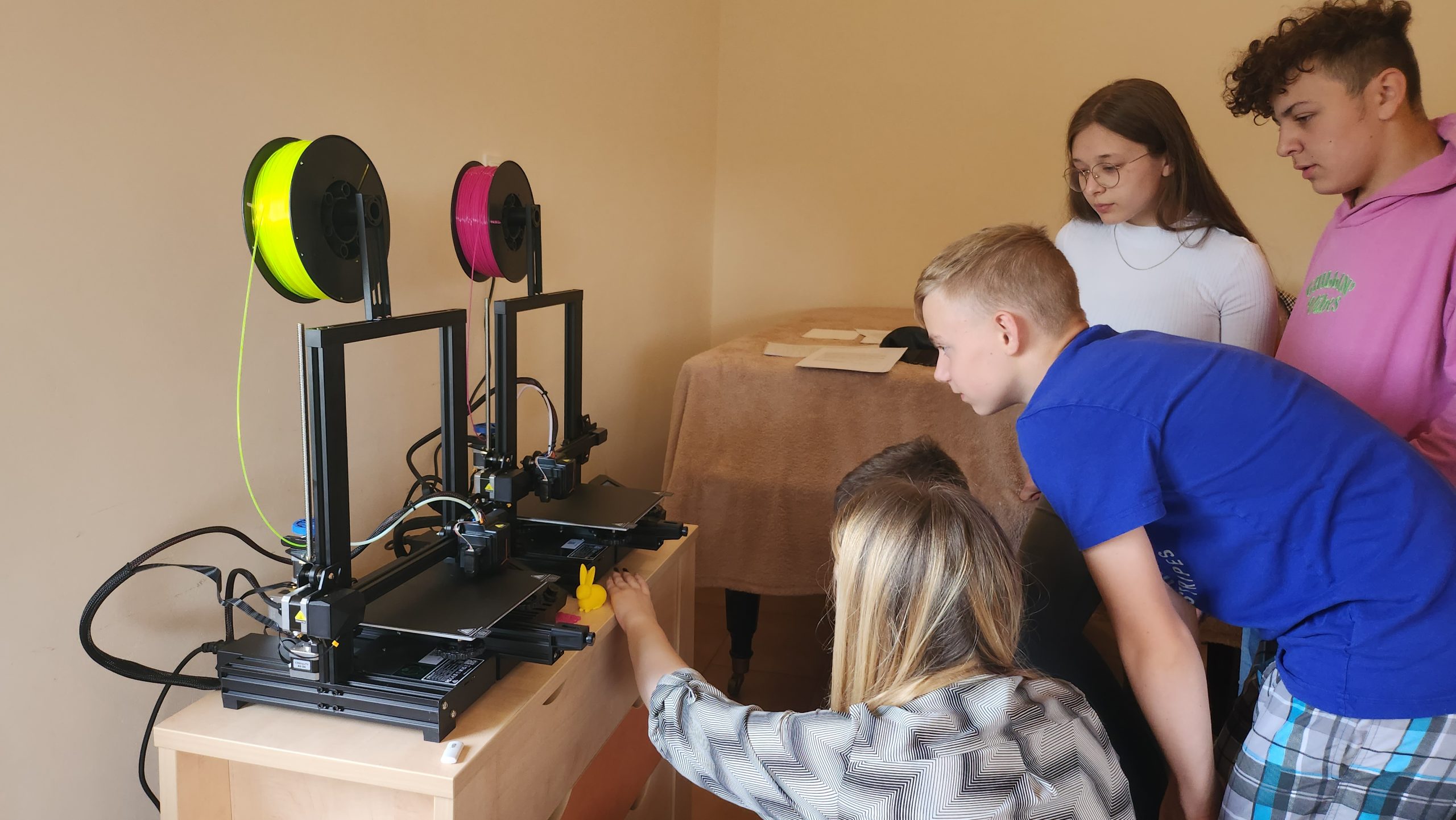 W ramach tego programu otrzymaliśmy drukarki 3D, długopisy 3D, multiszlifierki oraz ogromny zapas filamentów. Podczas spotkania dzieci z grupy Akademii Kreatywnego Rozwoju oraz uczestnicy projektu „EduMars: Z Brzozowa na Marsa” poznali działanie drukarek 3d oraz historię ich powstania. Każdy z uczestników spróbował rysunku długopisem 3d.