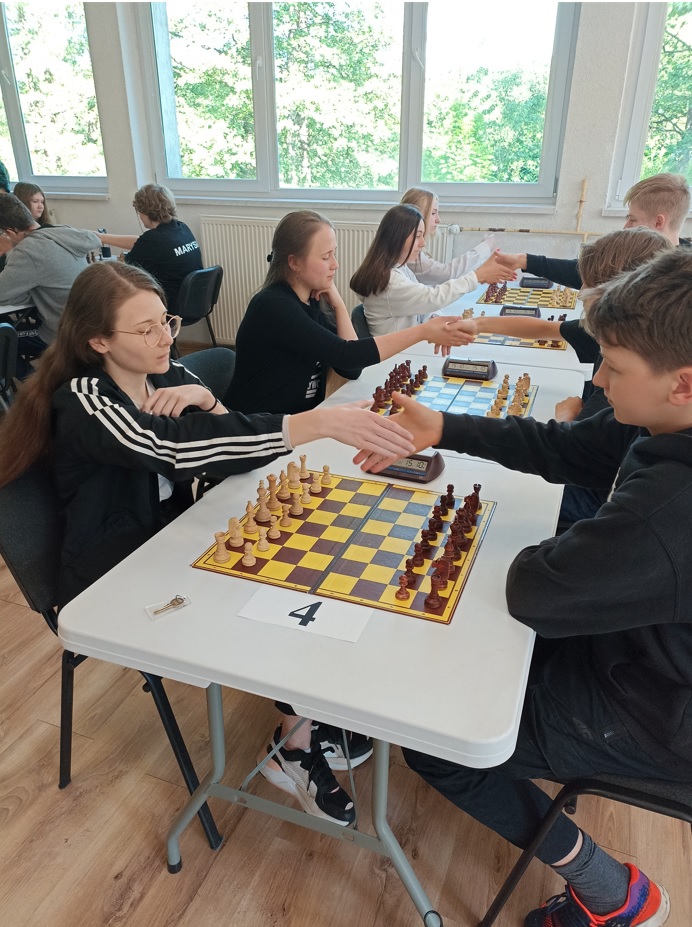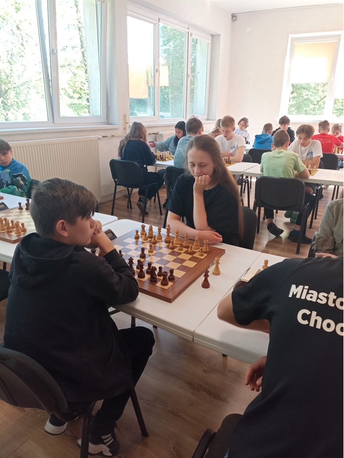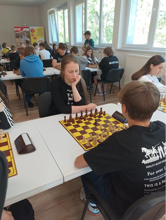 W dniach 29 maja – 1 czerwca w miejscowości Pokrzywna w województwie opolskim odbyły się Drużynowe Mistrzostwa Polski Szkół – Igrzyska Młodzieży Szkolnej w Szachach. W skład naszej drużyny wchodziły: Maja Mazurek, Maria Krzysztyńska, Milena Łach oraz Klaudia Futyma. Turniej wygrała Szkoła Podstawowa nr 2 w Rybniku, a kolejno 2 i 3 miejsce zajęły Szkoła Podstawowa nr 53 w Białymstoku oraz Szkoła Podstawowa w Chocianowie. Dziewczęta, mimo nieco pechowej ostatniej rundy, wywalczyły sobie 13 miejsce spośród wszystkich dwóch drużyn zakwalifikowanych z każdego województwa. Warto również wspomnieć, że nasza drużyna jako jedyna zaprezentowała się w pełni żeńskim składzie.