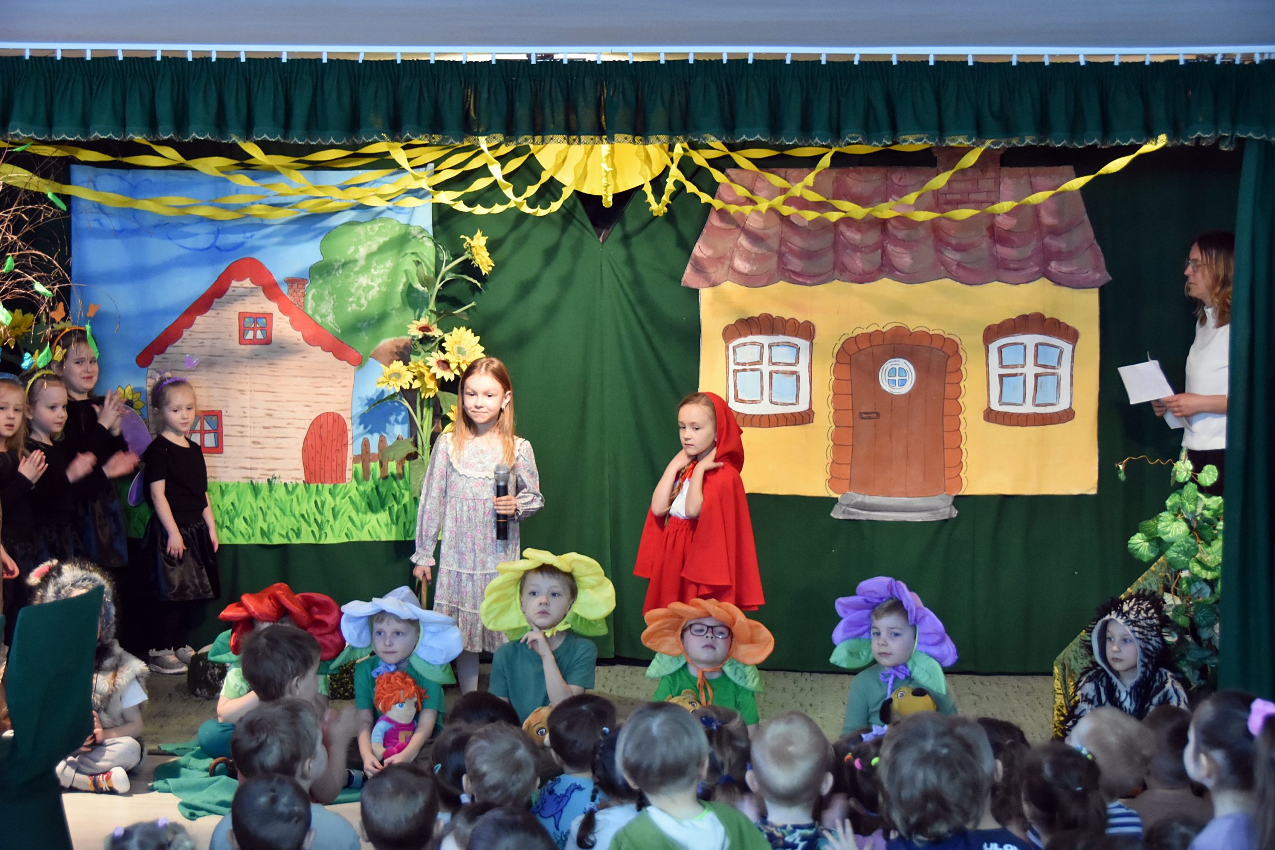 Celem spotkania była wymiana doświadczeń, pomysłów, propozycji dotyczących pracy z programem, a także pokazanie osiągnięć przedszkolaków i korelacji języka angielskiego z różnymi formami dziecięcej aktywności. Na początku w przedstawieniu ,,Czerwony Kapturek” zaprezentowała się grupa pięciolatków, która rozpoczęła przygodę z programem w 2022 roku. Był to niezwykle barwny spektakl, z piękną scenerią, bogatymi strojami, rekwizytami, pełen ruchu, muzyki, piosenek, dialogów z licznymi elementami języka angielskiego. Uczestnicy konferencji głośnymi brawami nagrodzili występujących , a dalsza część spotkania upłynęła na rozmowach, wymianie spostrzeżeń, propozycji związanych z realizacją programu ,,Dwujęzyczni od przedszkola” .