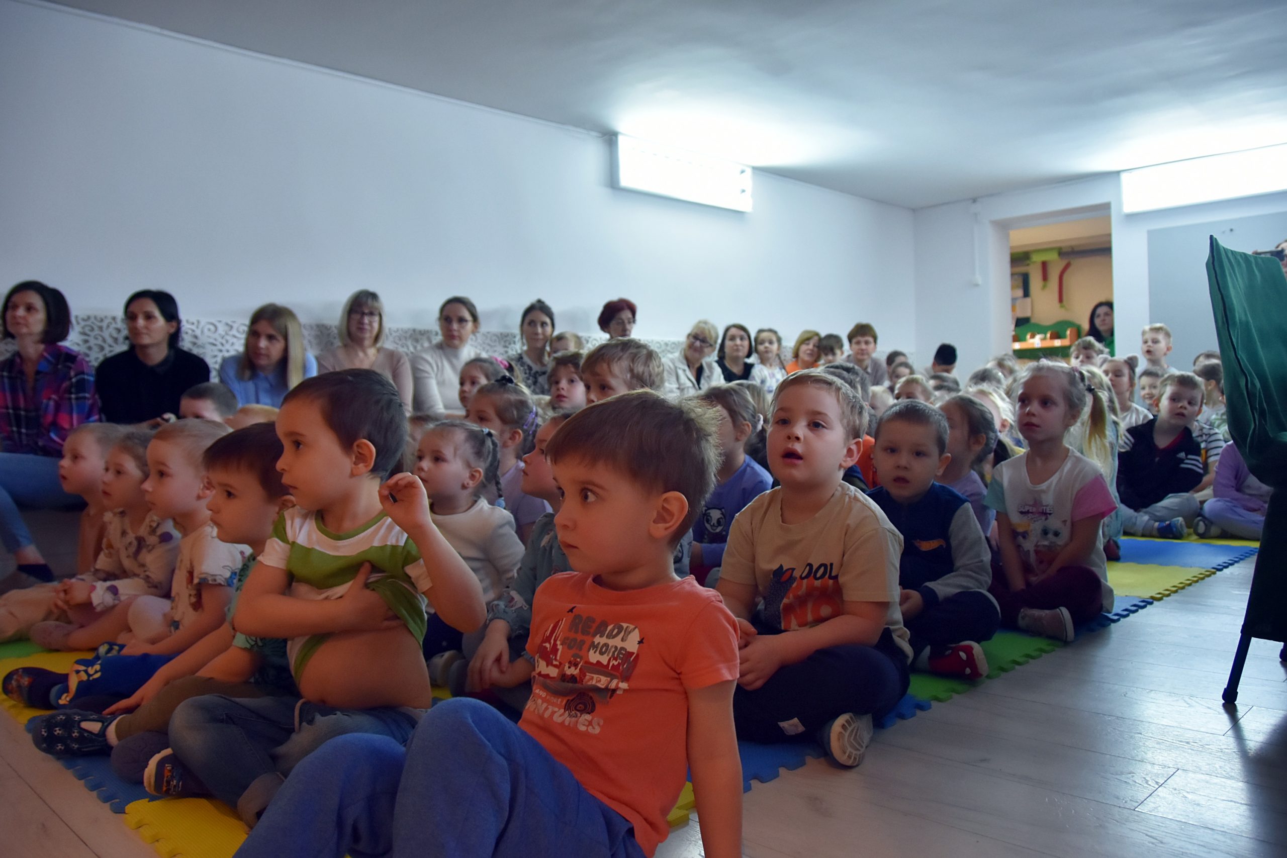 W godzinach popołudniowych spektakl obejrzeli również rodzice, którzy od początku wdrażania programu aktywnie uczestniczą we wspólnych zajęciach, a poprzez wspólne zabawy wspierają swoje pociechy w nauce języka angielskiego.