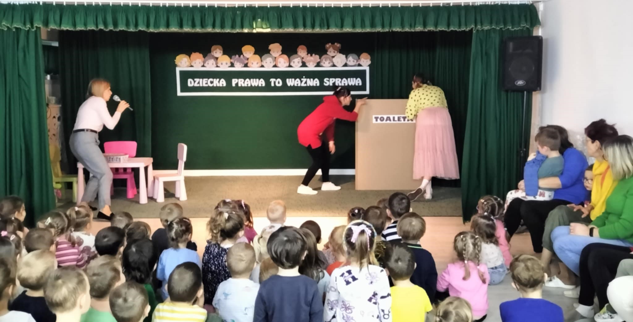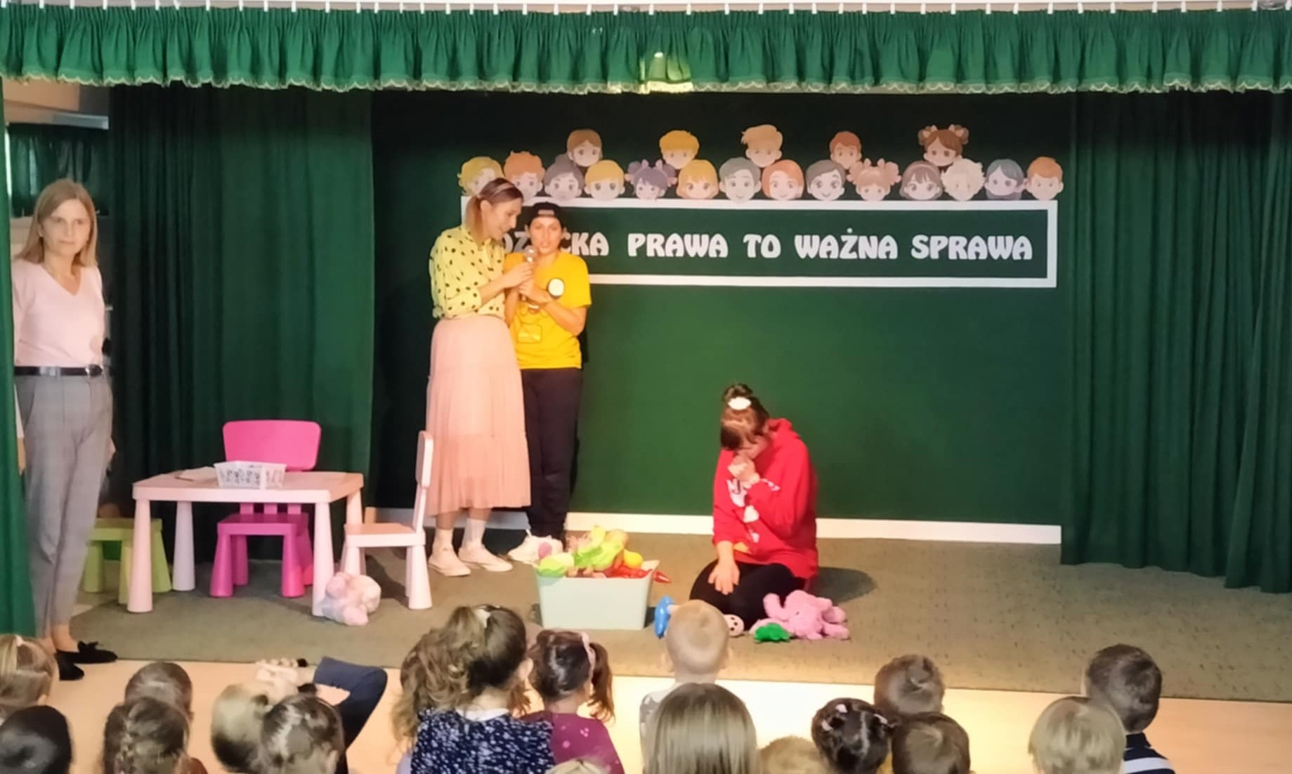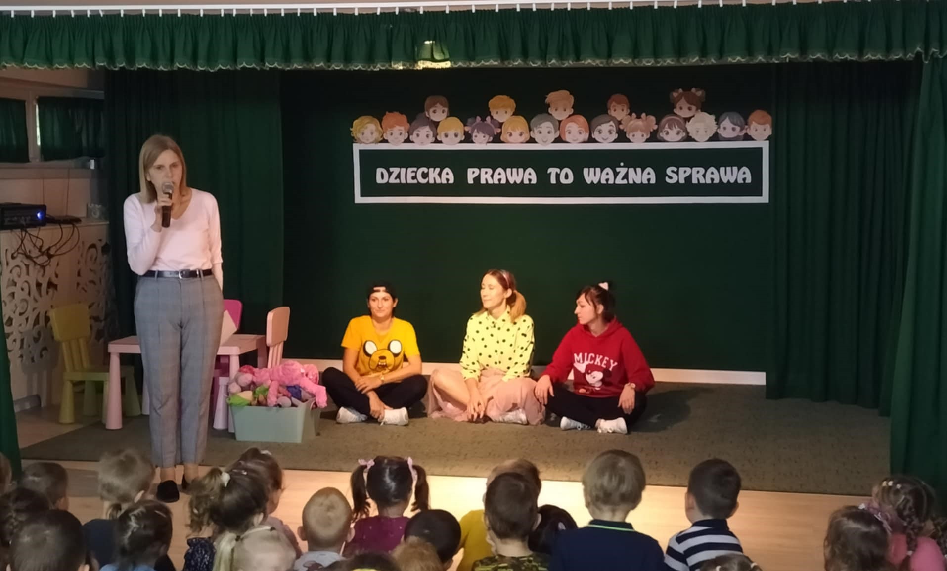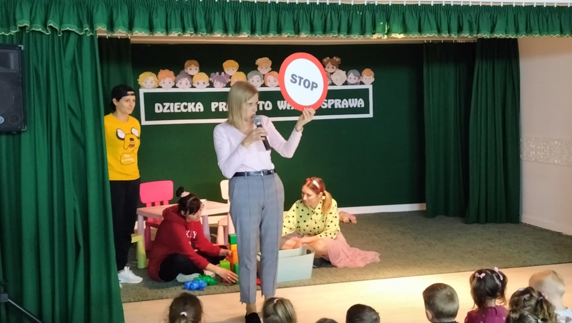 Dziecięce prawa zostały ukazane w prosty, obrazowy sposób, w krótkich scenkach domowych, w których wystąpiły panie nauczycielki. Pojawił się również symboliczny znak STOP, używany w sytuacjach związanych z łamaniem praw. Spotkanie przebiegało z aktywnym udziałem przedszkolaków, co świadczy o zrozumienie tematyki, a zakończyło się tanecznymi zabawami integracyjnymi.