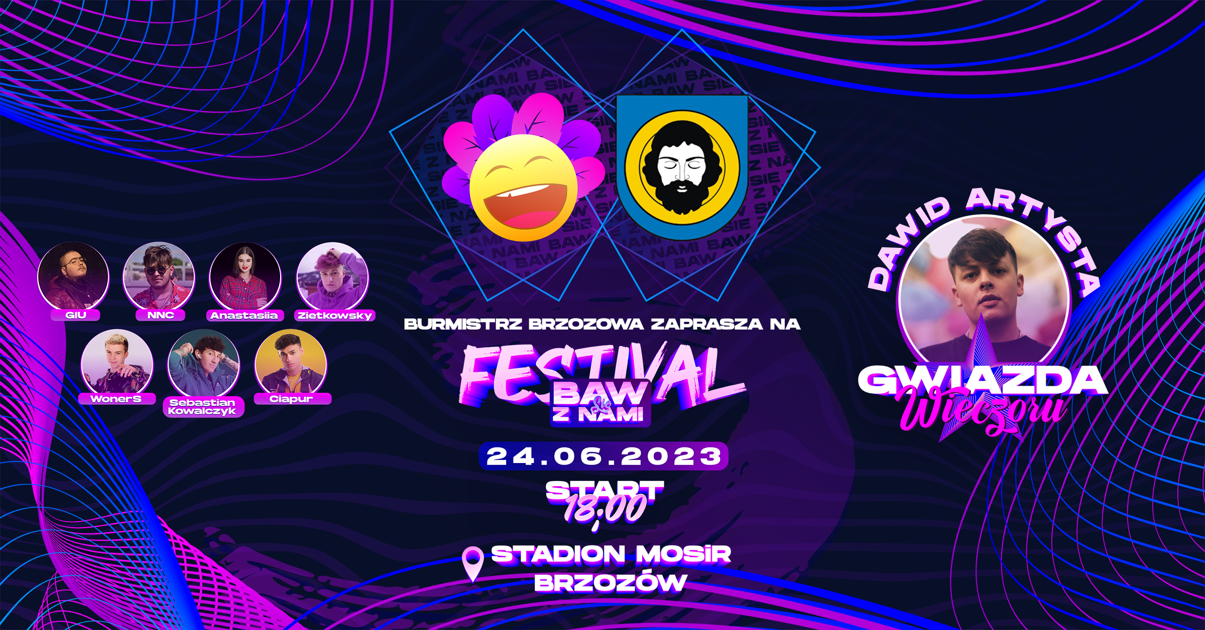 15.06.2023 Festiwal „Baw się z Nami” Burmistrz Brzozowa zaprasza na Festival #BawSięZNamiImpreza dla młodych po raz pierwszy w Brzozowie. Stadion MOSiR Brzozów – 24 czerwca – Start: :
