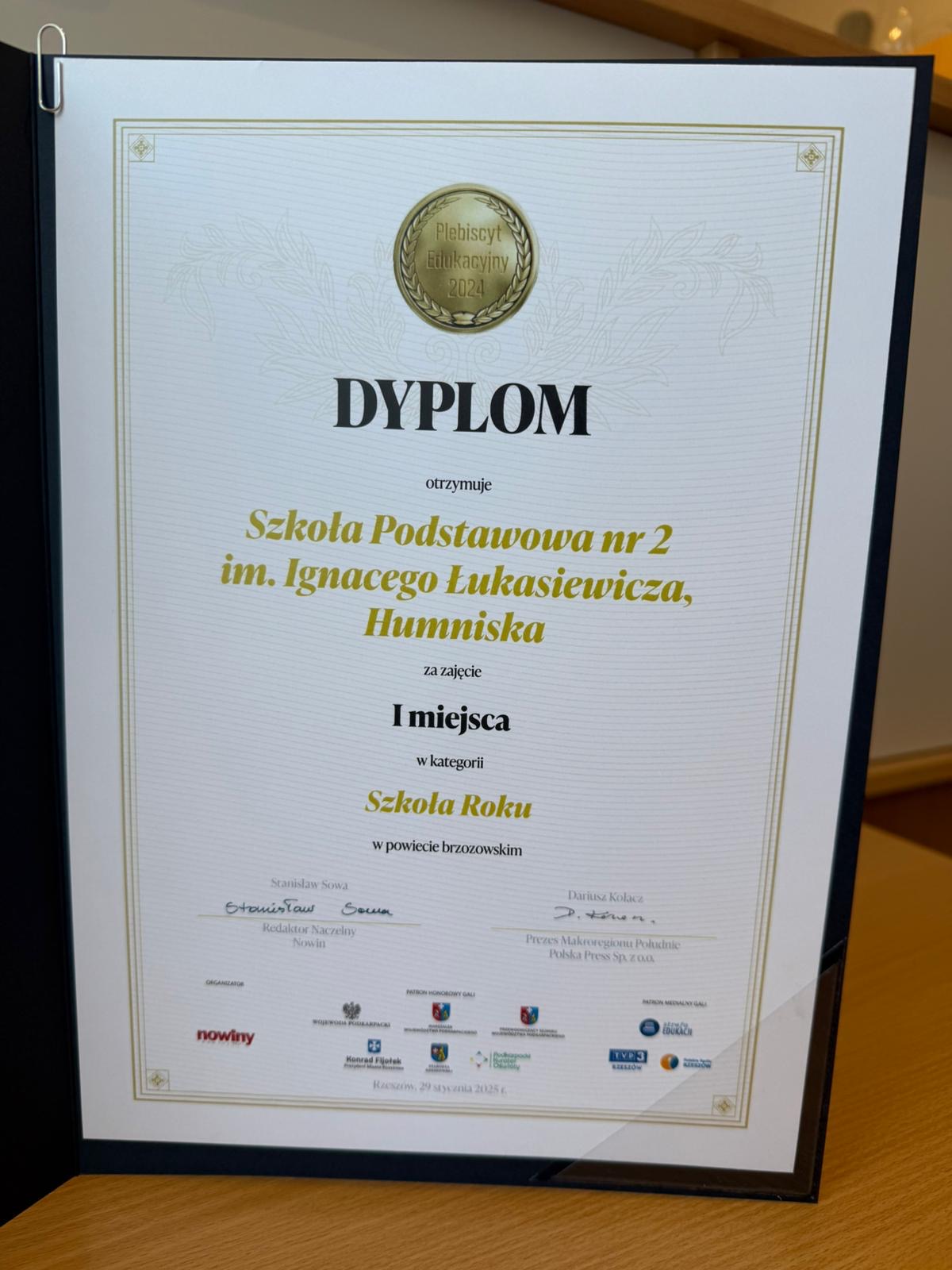 Z naszej Gminy, II miejsce w kategorii Dyrektor Placówki Edukacyjnej w województwie podkarpackim zajęła Anna Szajnowska-Jajko – dyrektor Przedszkola Samorządowego Nr 1 w Brzozowie, natomiast I miejsca w kategorii nauczyciel klas 0-III w powiecie brzozowskim zajęła Anna Brodzicka – Woźniak – wychowawczyni klasy 3 w Szkole Podstawowej nr 2 w Humniskach. Szkołą roku w powiecie brzozowskim została Szkoła Podstawowa Nr 2 im. Ignacego Łukasiewicza w Humniskach.