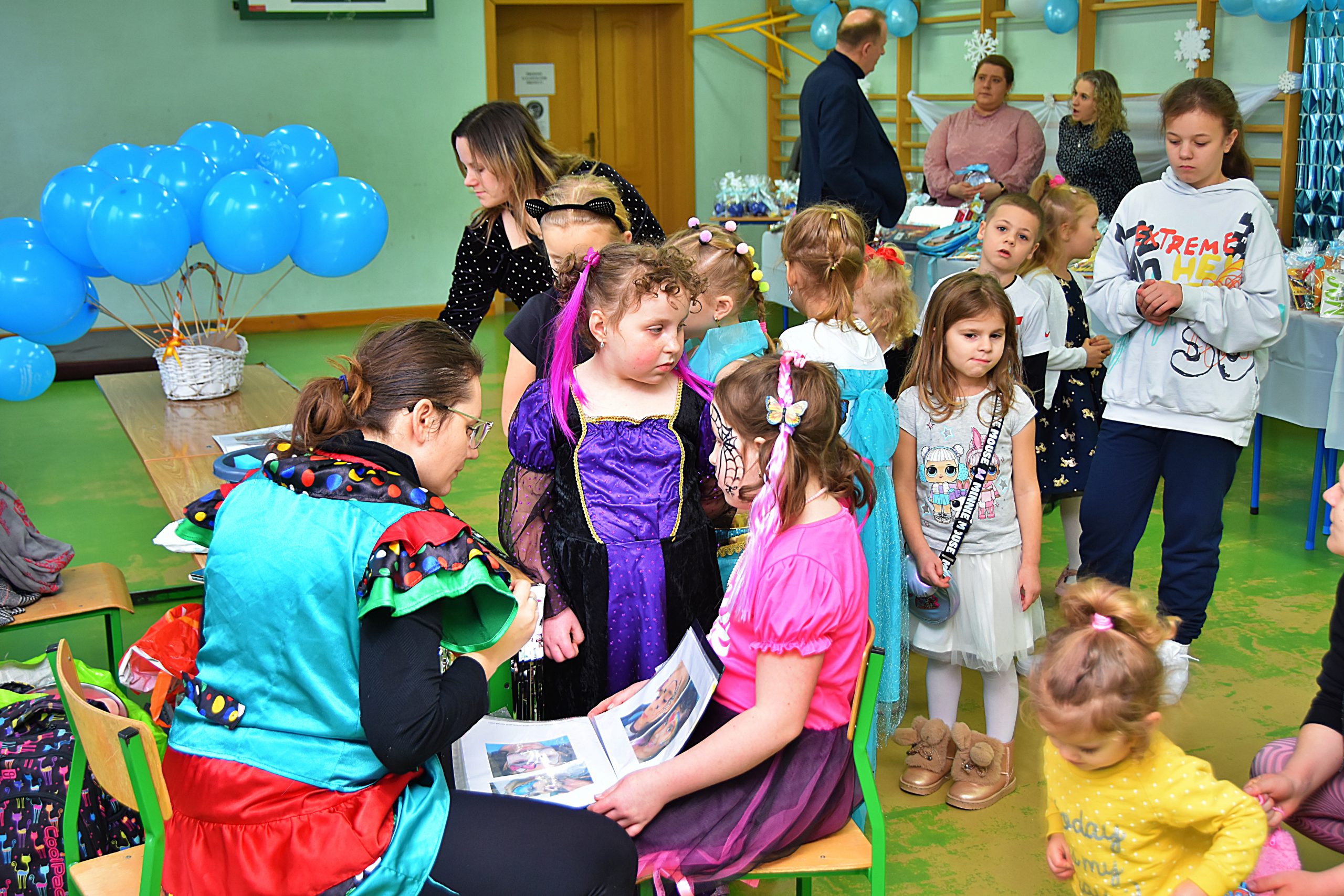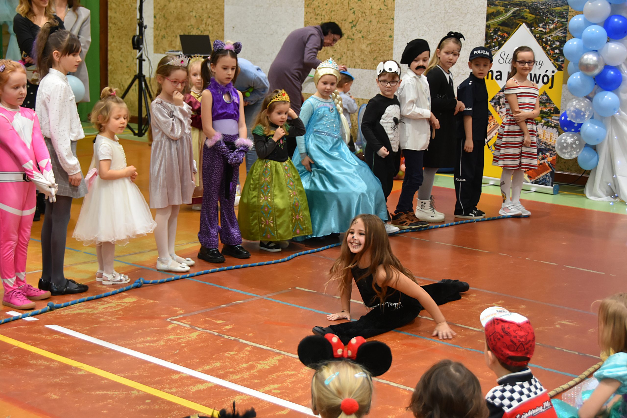 Najmłodsi – w karnawałowych strojach – wraz ze swoimi rodzicami i dziadkami, zebrali się licznie w pięknie udekorowanej sali w Szkole Podstawowej nr 1 w Brzozowie. Na wszystkie dzieci czekało mnóstwo atrakcji.