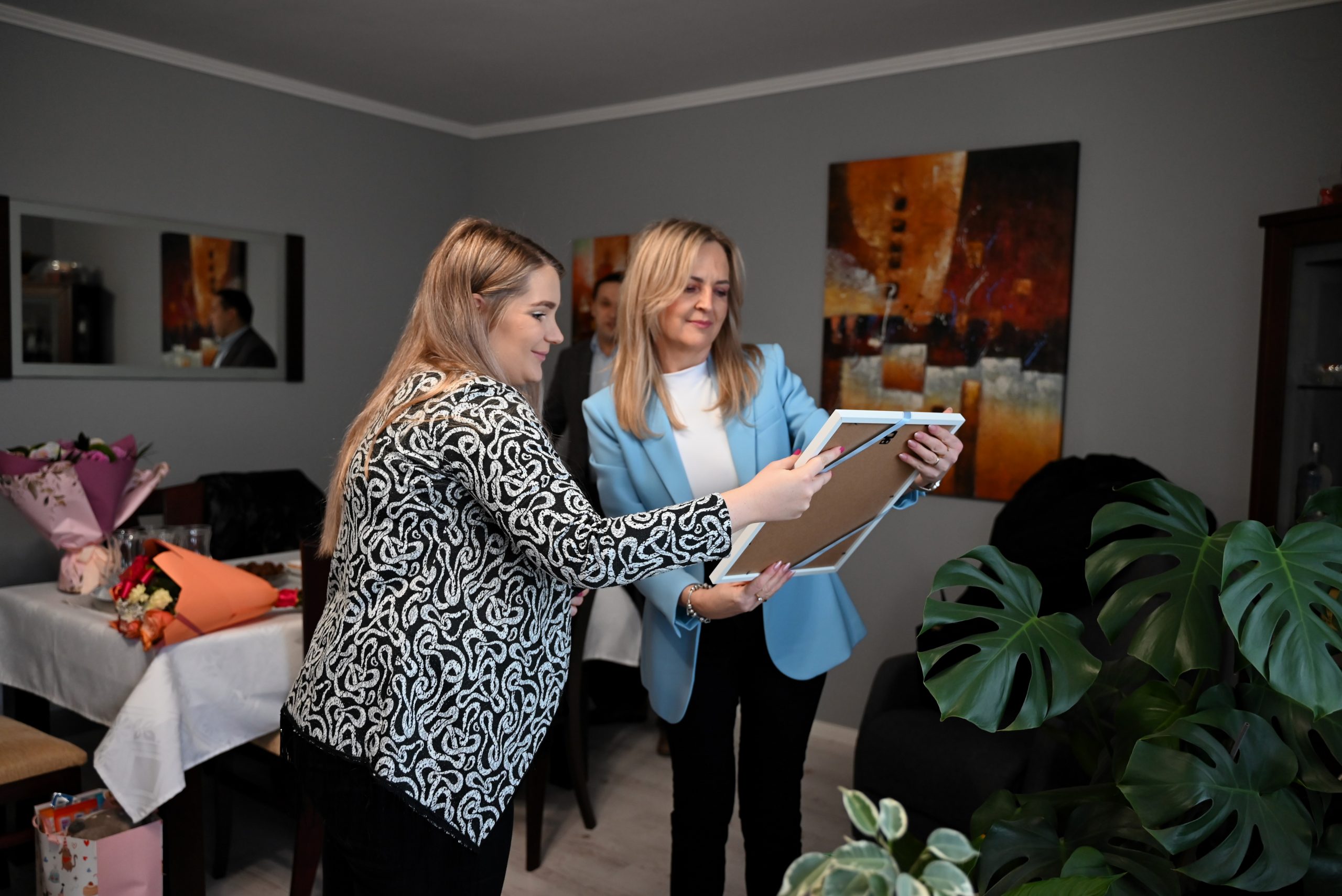 Burmistrz Szymon Stapiński złożył gratulacje, życzenia zdrowia i samych radosnych dni młodej rodzinie oraz wręczył upominek.