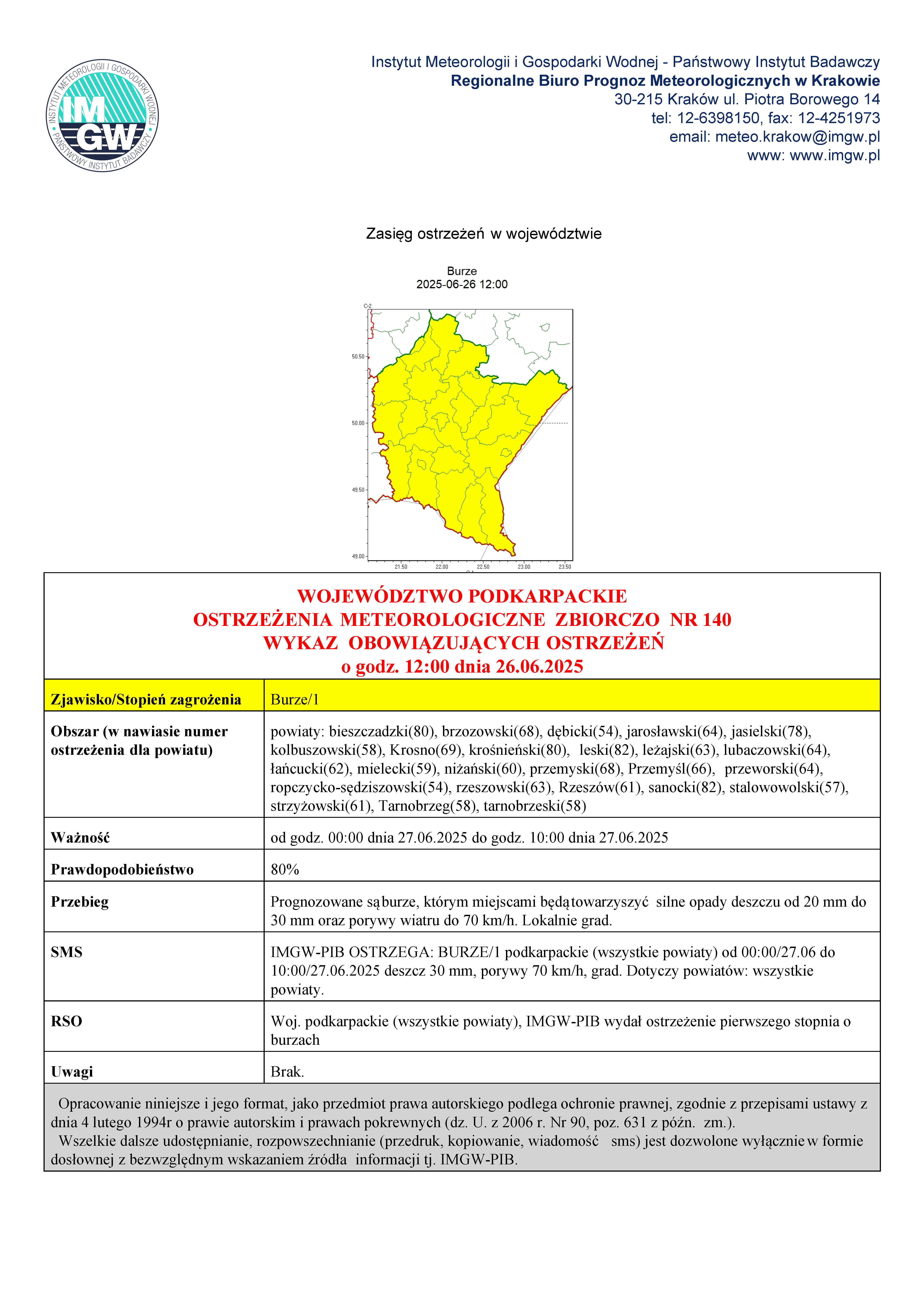 IMGW ostrzega o możliwych burzach z silnymi opadami deszczu !