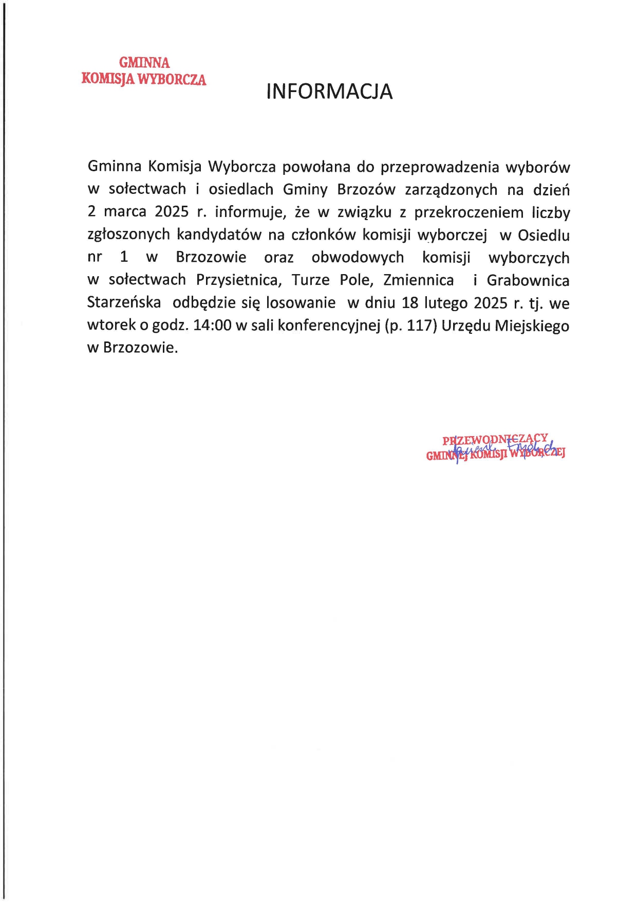 Informacja Gminnej Komisji Wyborczej