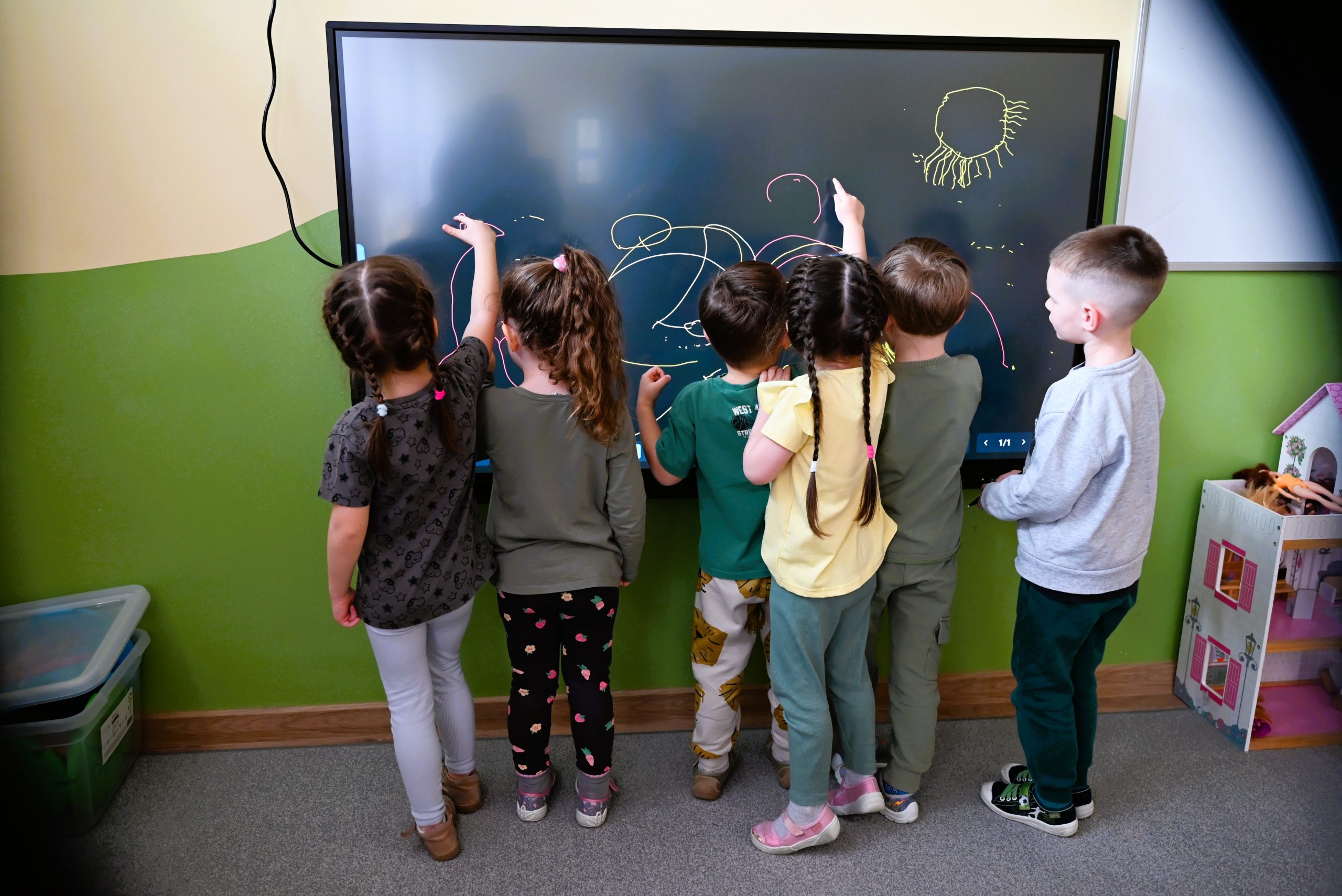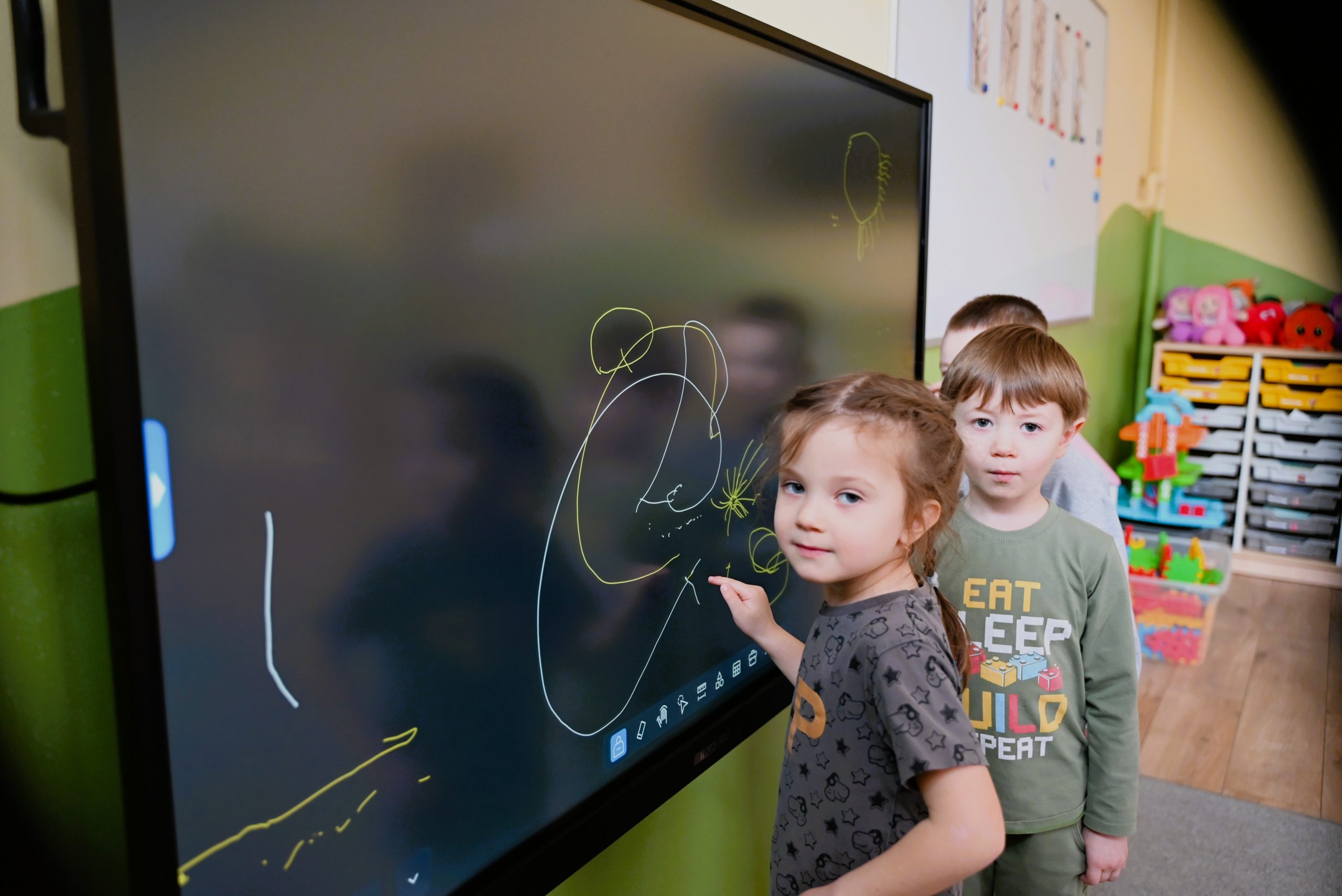 W ramach podpisanej umowy przez Burmistrza Brzozowa Szymona Stapińskiego i otrzymanych środków finansowych do wszystkich przedszkoli zakupiono łącznie 14 szt. monitorów interaktywnych o przekątnej ekranu 65”, które uatrakcyjniają formy prowadzenia różnorodnych zajęć z dziećmi.