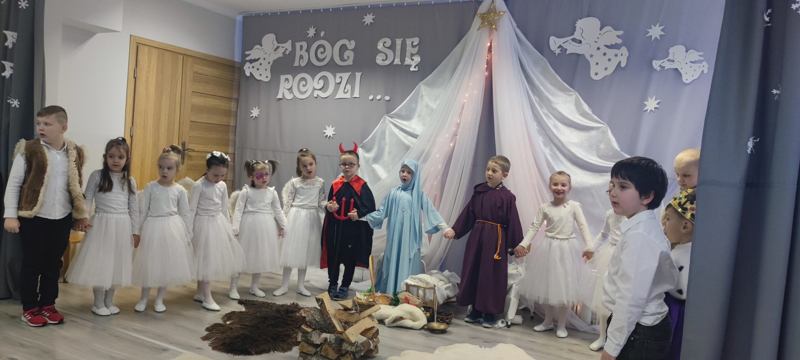 Czy jest coś bardziej wzruszającego od maleńkich pastuszków przynoszących swe dary do szopki, małych i dużych aniołków, dzieci z darami w dłoniach oraz królów, którzy mimo zaledwie kilku lat nie tracili nic ze swojego majestatu. W swoją rolę doskonale wczuł się również diabełek, który pomimo tego, że nie uzyskał ani jednego piórka od aniołków bardzo dobrze wywiązał się ze swojego trudnego zadania i razem z aniołkami poszedł do szopki.