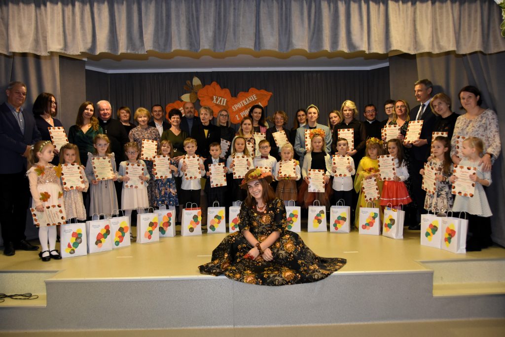 W dniu 17.11.2023r. w sali widowiskowej kościoła w Humniskach – Skrzyżowanie odbyło się XXII Spotkanie z Piosenką pod hasłem „Jesienny warkocz piosenek”, którego organizatorem było Przedszkole Samorządowe Nr 2 w Humniskach. Dyrektor Barbara Piotrowska powitała zaproszonych gości, a spotkanie poprowadziła Anna Paszkaniak. W spotkaniu wzięły udział dzieci z ośmiu palcówek szkolno-przedszkolnych Gminy Brzozów, które zaprezentowały piosenki o leśnych darach jesieni.
