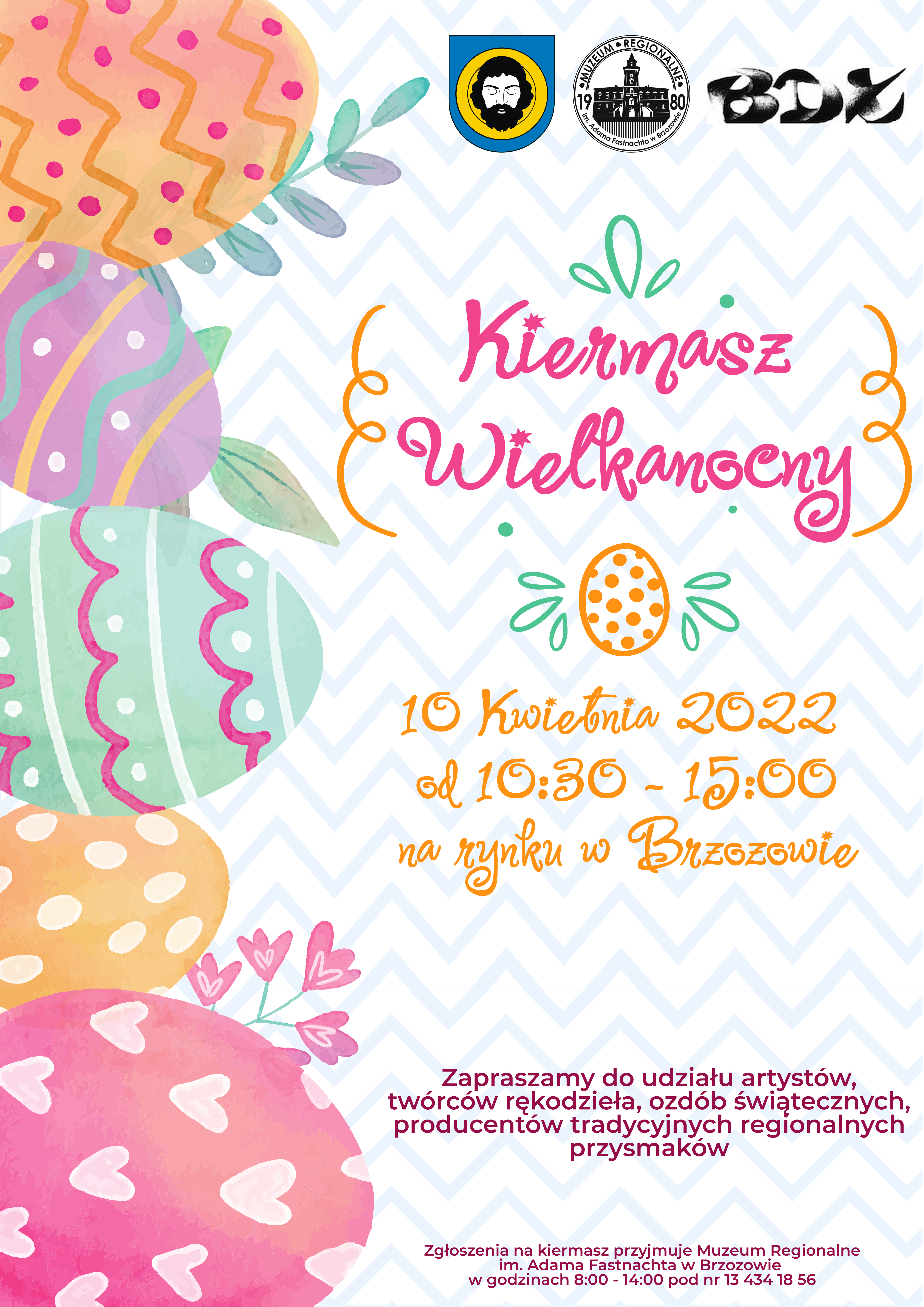 Wystawców chętnych do udziału w Kiermaszu Wielkanocnym, zapraszamy do zgłaszania się pod nr 13 434 18 56 do Muzeum Regionalnego w Brzozowie w godzinach 8:00 – 14:00 do 4 kwietnia włącznie.