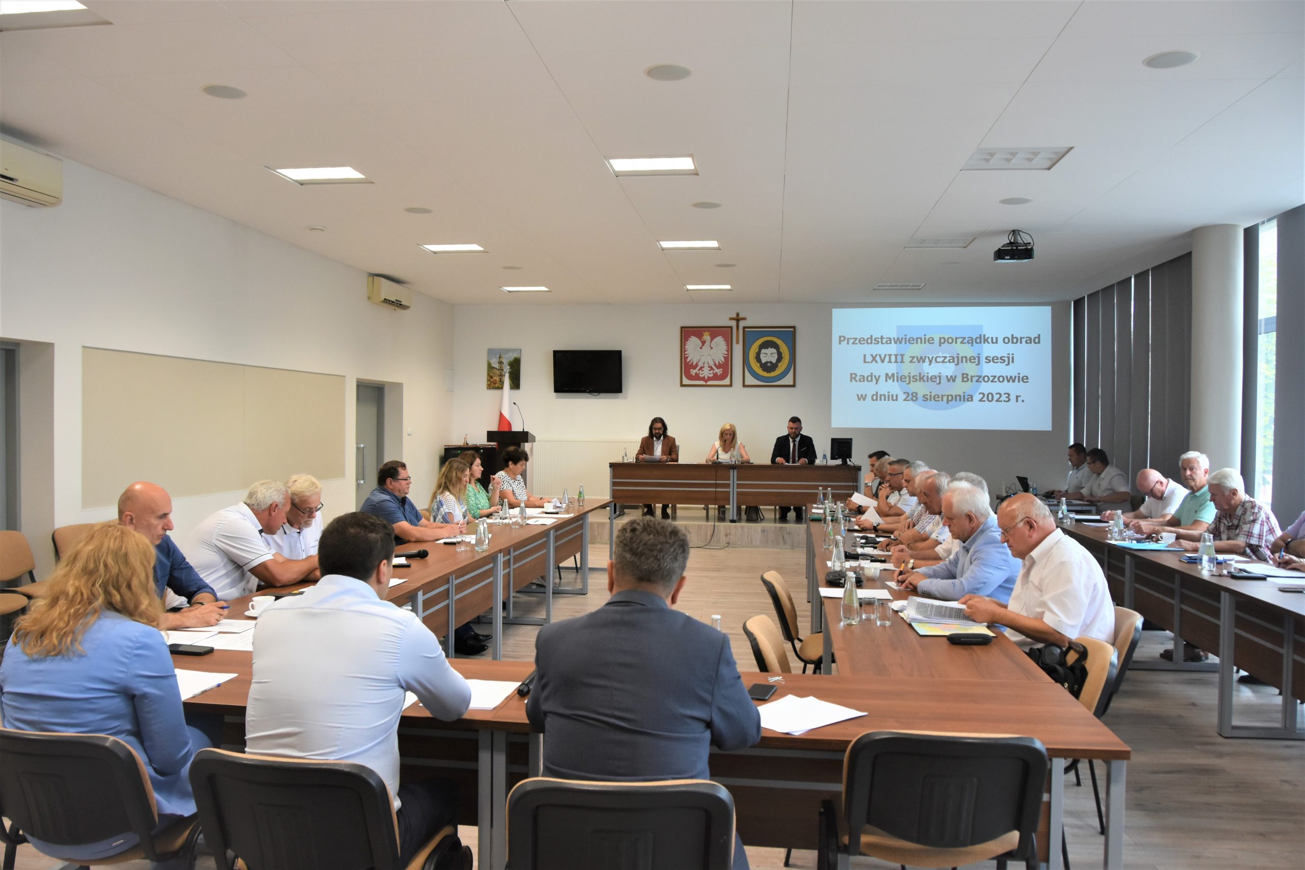 W poniedziałek 28 sierpnia br. w Urzędzie Miejskim w Brzozowie odbyła się LXVIII  zwyczajna sesja Rady Miejskiej. Oprócz radnych w obradach uczestniczyli: Burmistrz Brzozowa Szymon Stapiński, Sekretarz Gminy Brzozów Waldemar Och, Skarbnik Gminy Brzozów Anna Konieczna, Naczelnik Wydziału Gospodarki Nieruchomościami i Infrastruktury Urzędu Miejskiego Piotr Zgłobicki, sołtysi, przewodniczący osiedli oraz mieszkańcy.