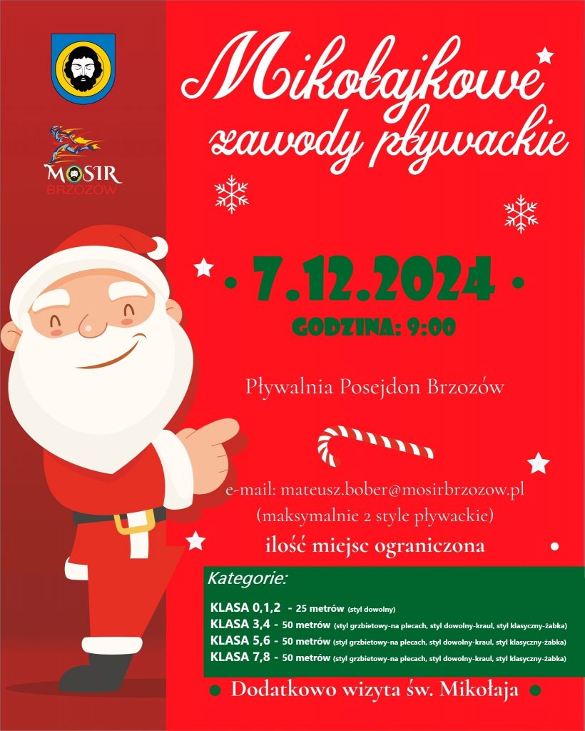 Oto, co czeka na mieszkańców i odwiedzających nasze miasto: Miasteczko Świętego Mikołaja na brzozowskim Rynku, Mikołajowy Turniej Pływacki oraz XXVI Mikołajkowy Turniej Szachowy. Szczegóły na plakatach.