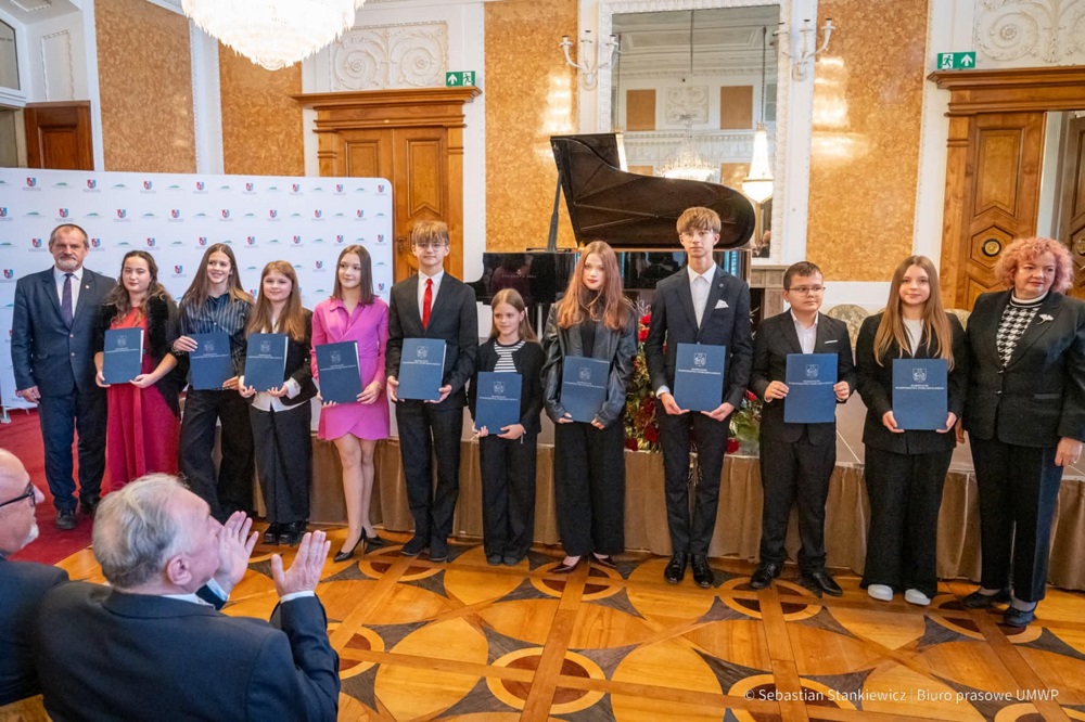 Serdecznie gratulujemy Paulinie Zubel, pięciokrotnej laureatce tego stypendium, uczennicy Państwowej Szkoły Muzycznej I i II st. im. Wandy Kossakowej w Sanoku, która miała zaszczyt otworzyć galę; Amelii Sowińskiej, na co dzień uczęszczającej do Akademii Wokalno-Aktorskiej MF. Artis oraz Szymonowi Buczkowiczowi – utalentowanemu akordeoniście, uczniowi Szkoły Muzycznej I st. w Dydni!