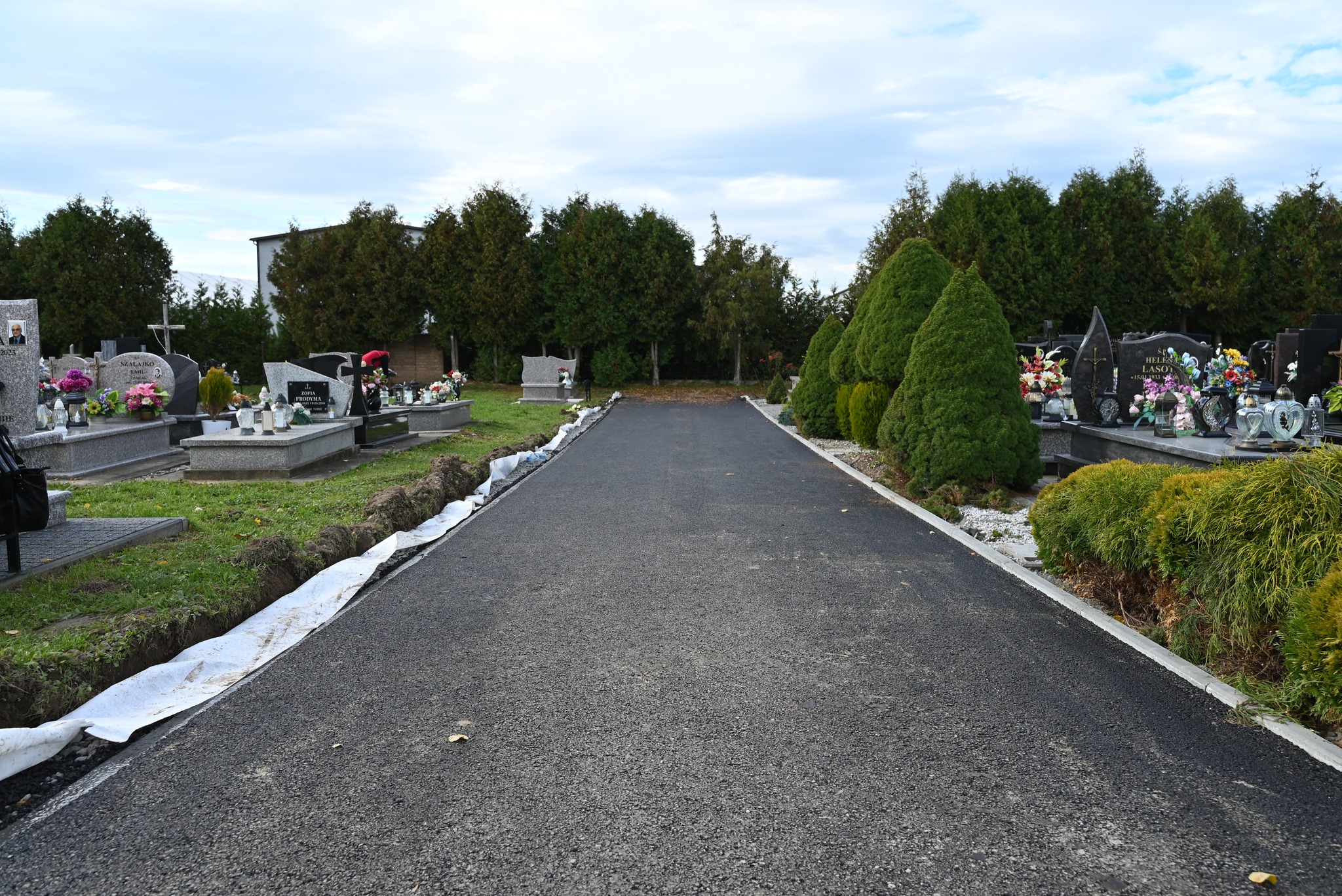 W ramach inwestycji powstanie 375 metrów bieżących alejek o szerokości 3 metrów. Ich nawierzchnia zostanie wykonana z betonu asfaltowego, a pobocza – z ozdobnego kruszonego granitu. Całość zostanie uzupełniona nasadzeniami roślin ozdobnych, takimi jak cis kolumnowy, tuja ‘Danica’ oraz czerwony klon kolumnowy, które wkrótce dodadzą przestrzeni zieleni. Prace obejmują również poprawę nawierzchni górnego parkingu przy ogrodzeniu cmentarza, który zostanie utwardzony kruszywem łamanym, co poprawi komfort korzystania z miejsca.