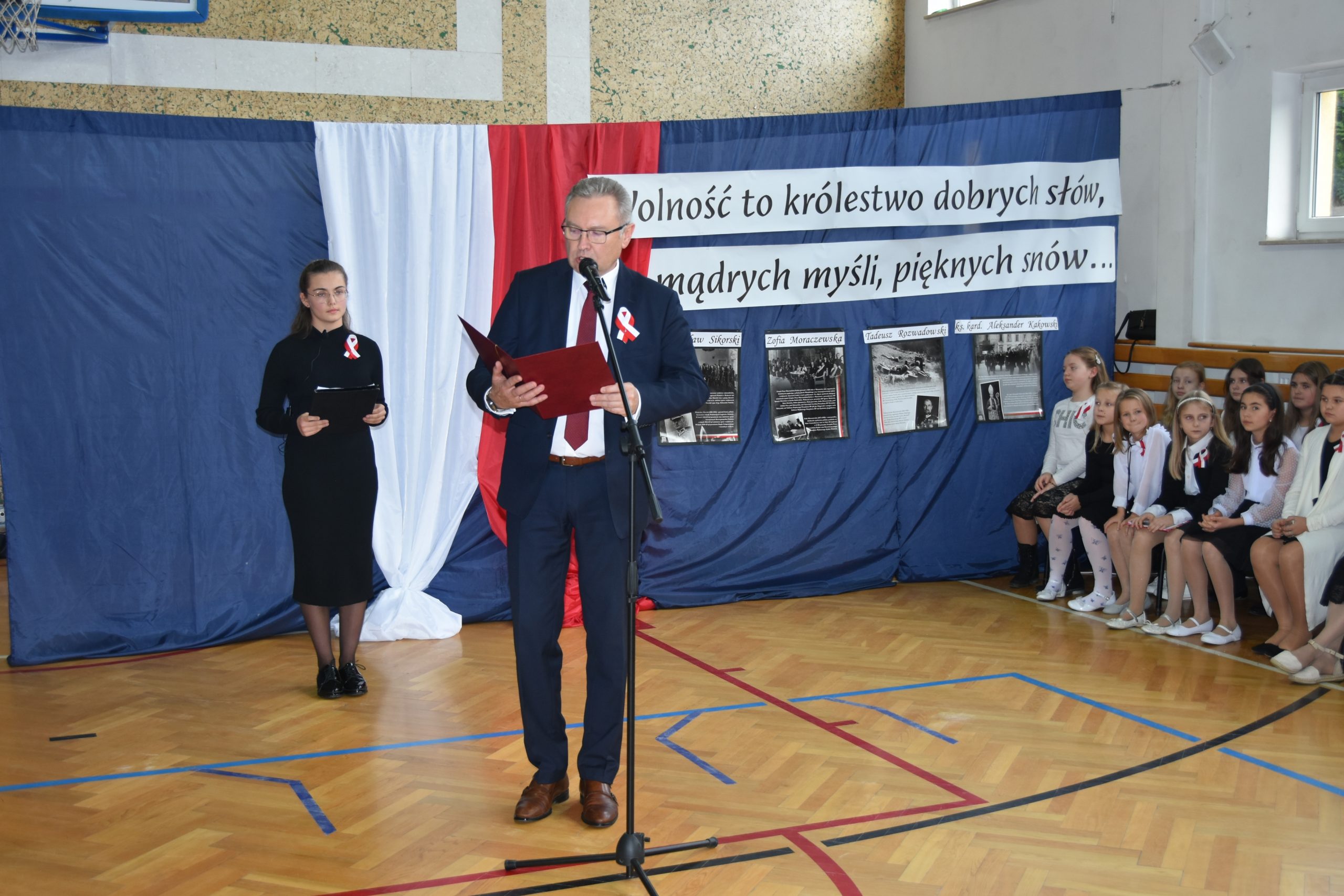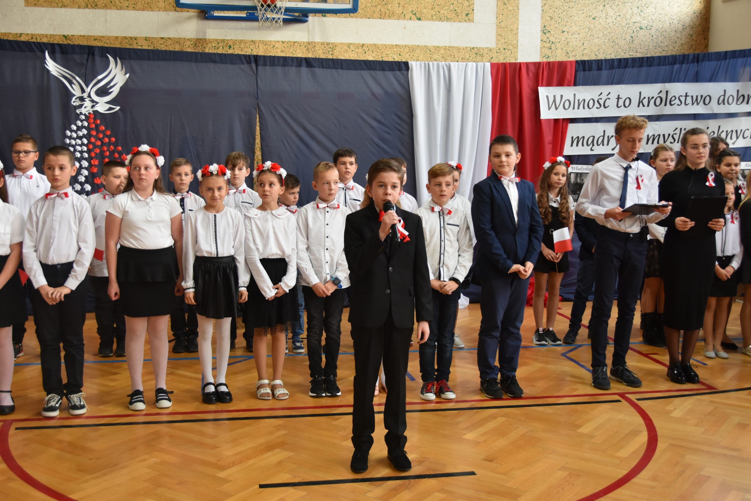 Licznie przybyłych gości powitał Dyrektor Szkoły Podstawowej w Grabownicy Starzeńskiej Mariusz Hałasik. Następnie kilkudziesięcioro dzieci z miejscowego przedszkola i szkoły podstawowej zaprezentowało bogaty program artystyczny, ukazujący znaczenie i wartość patriotyzmu. Odśpiewano też wspólnie pieśni patriotyczne, takie jak „Piechota”, „Legiony” czy „Mury”, a każdy z uczestników mógł otrzymać specjalny śpiewnik okolicznościowy.